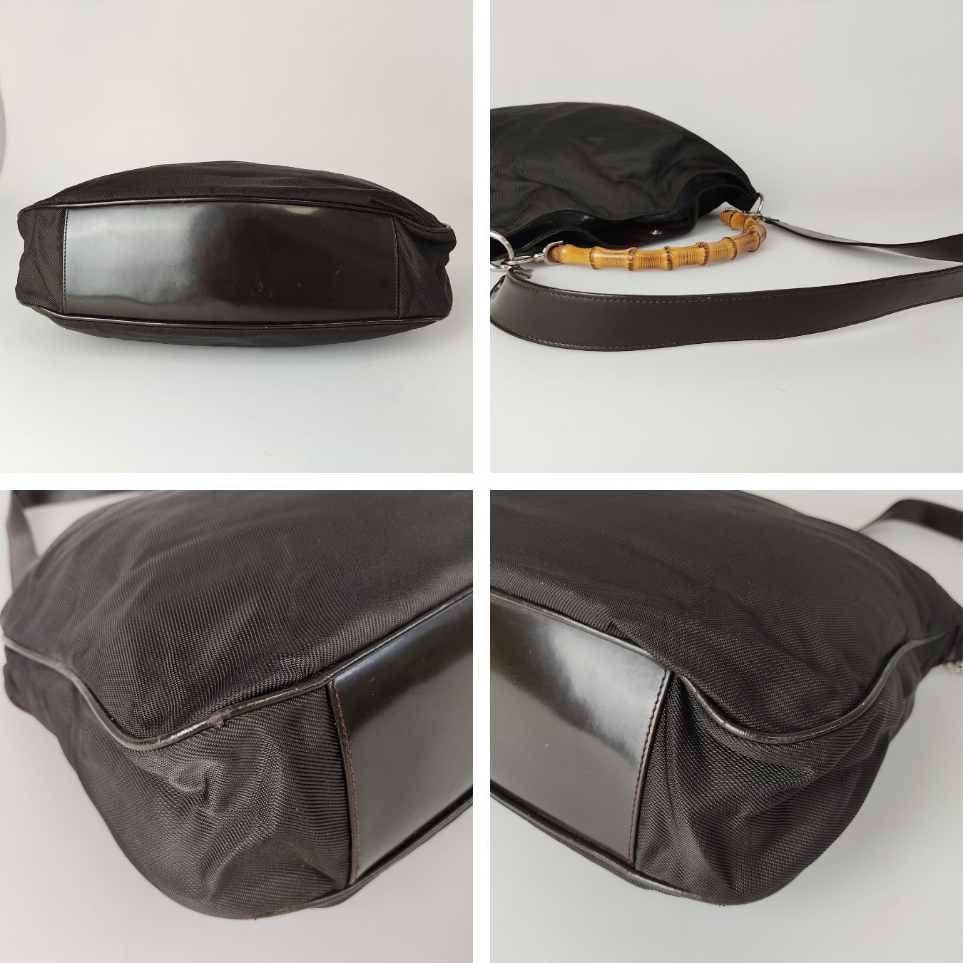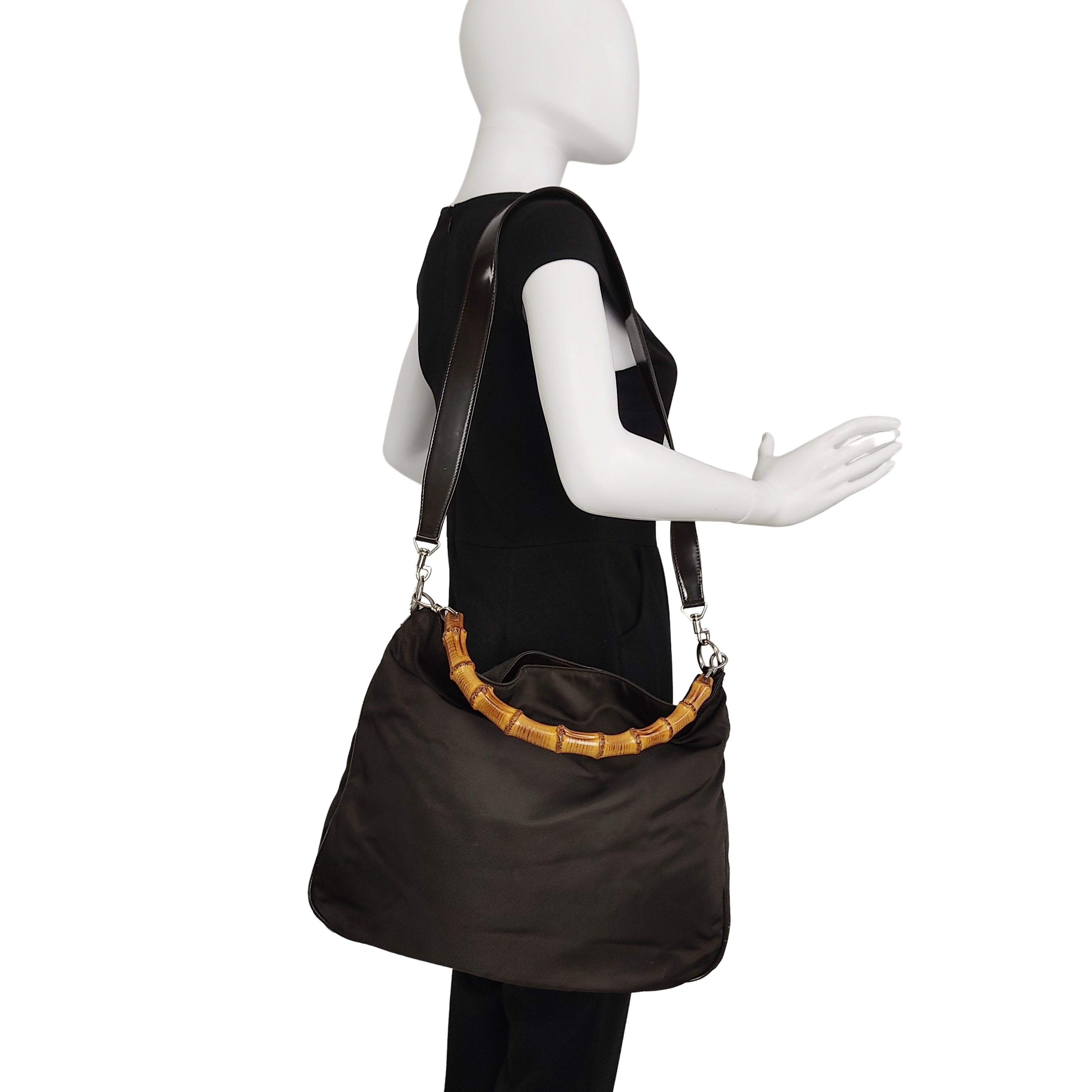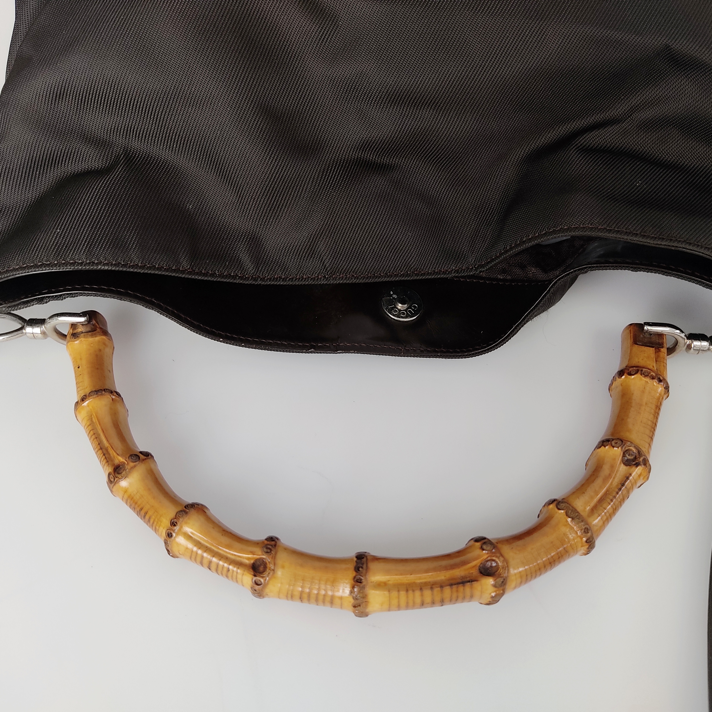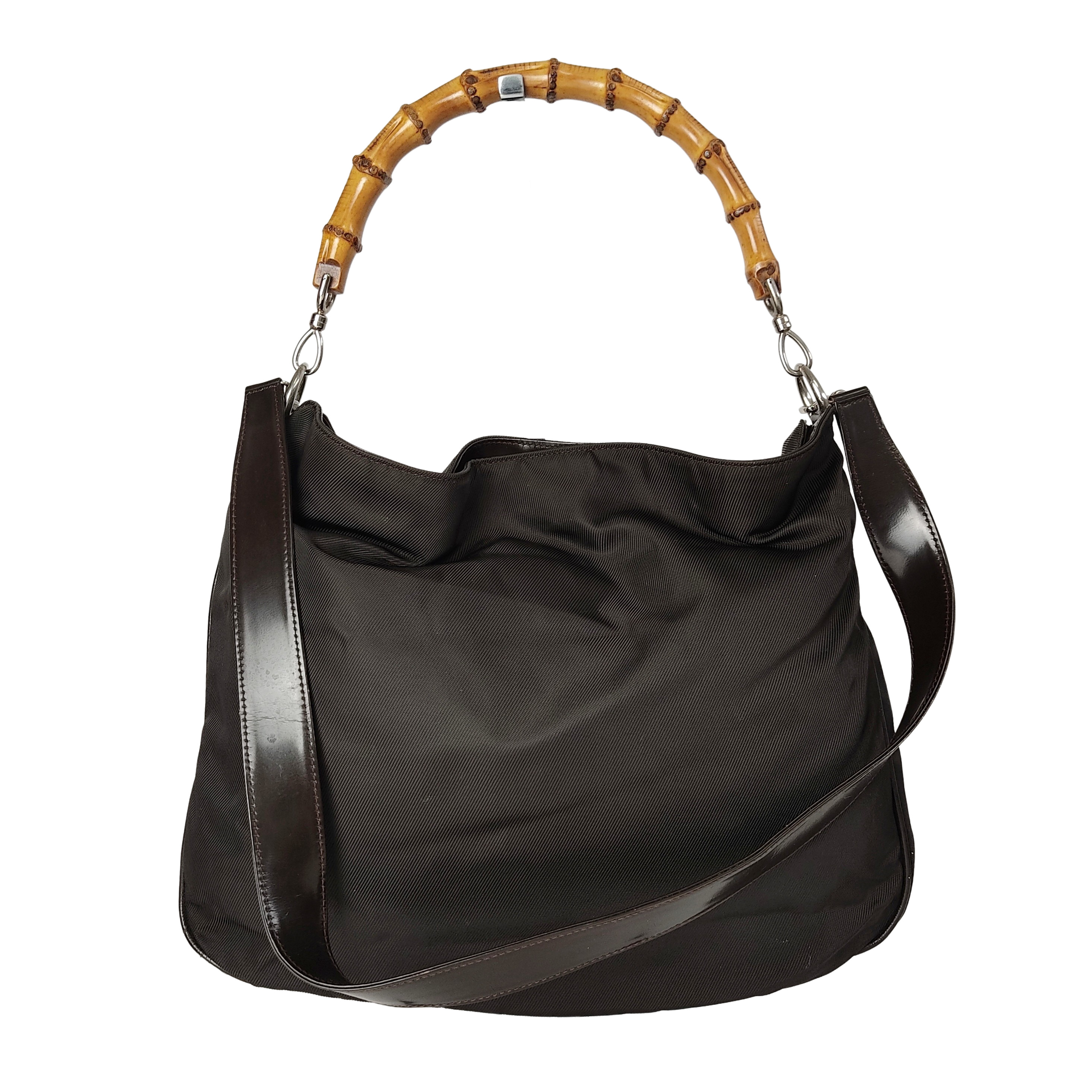 Aus braunem Nylon und Ton-in-Ton-Lackleder.