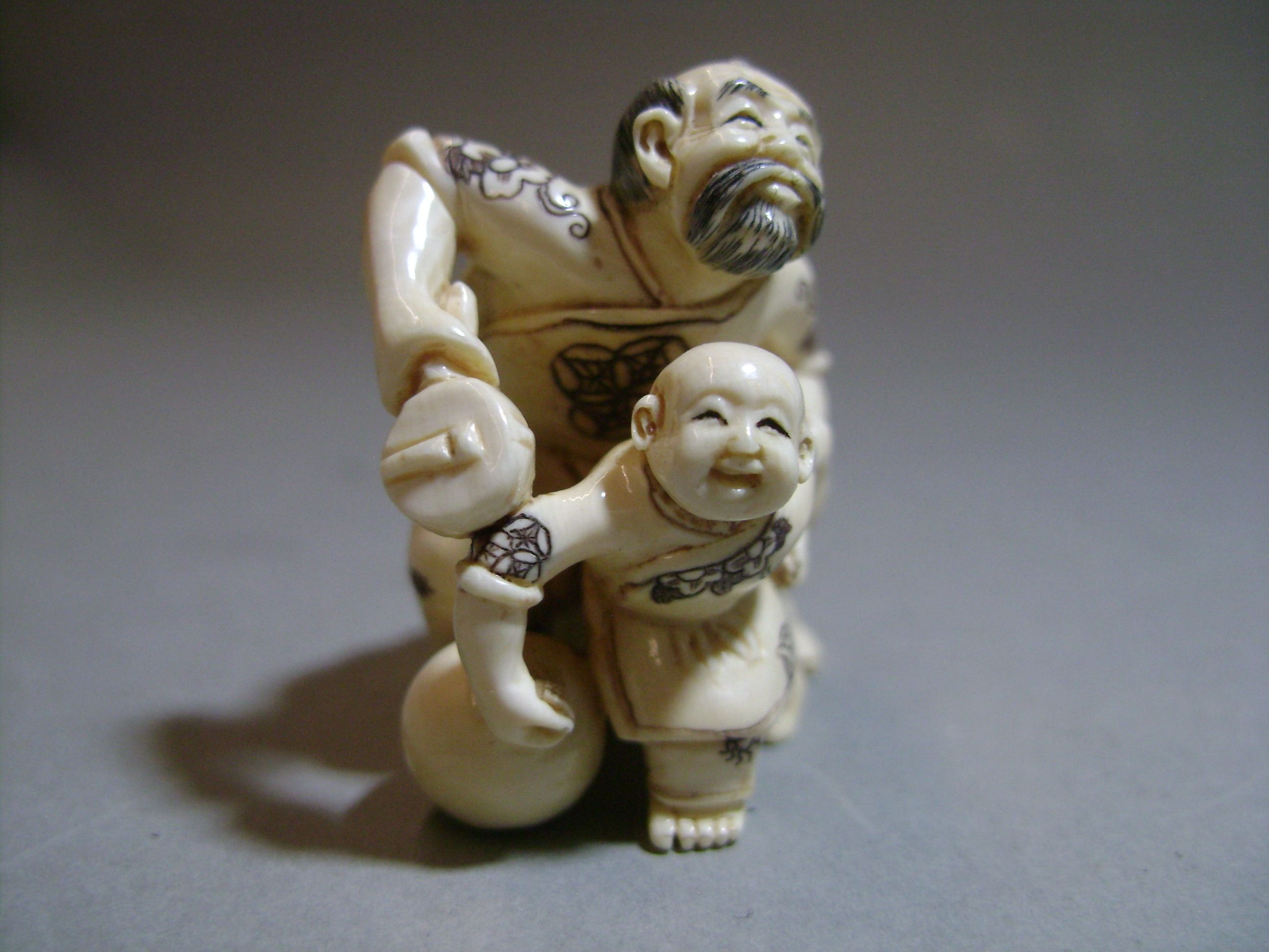 Netsuke aus Elfenbein einen Vater und seinen Sohn darstellend.