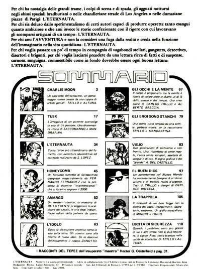 Erste Veröffentlichung in der italienischen Zeitschrift Eternauta Nr. 0 im Oktober 1980, dann in der argentinischen Zeitschrift Skorpio 1985, dann in der italienischen Zeitschrift Lanciostory Nr. 28 1991.