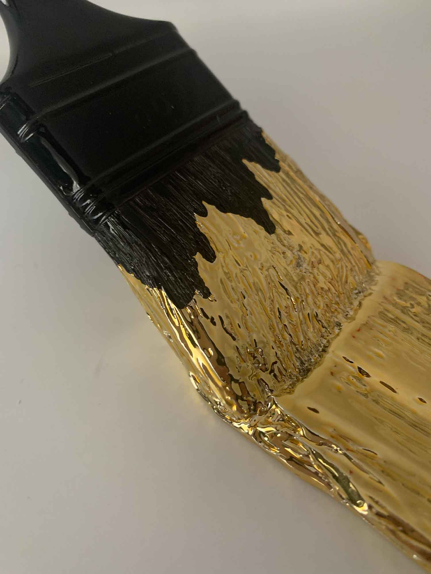 Santicri Goldpinsel, 2023 Mischtechnik auf Harz. Das Werk ist eine Auflage von 100 Exemplaren. Größe: 40 x 18 cm