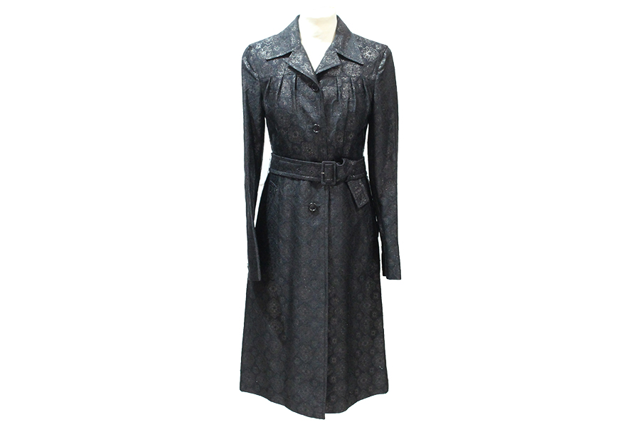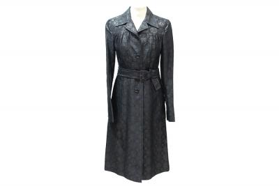 MANTEAU HABILLE PRADA EN SOIE ET COTON NOIR IMPRIME FLORAL IRISE NOIR