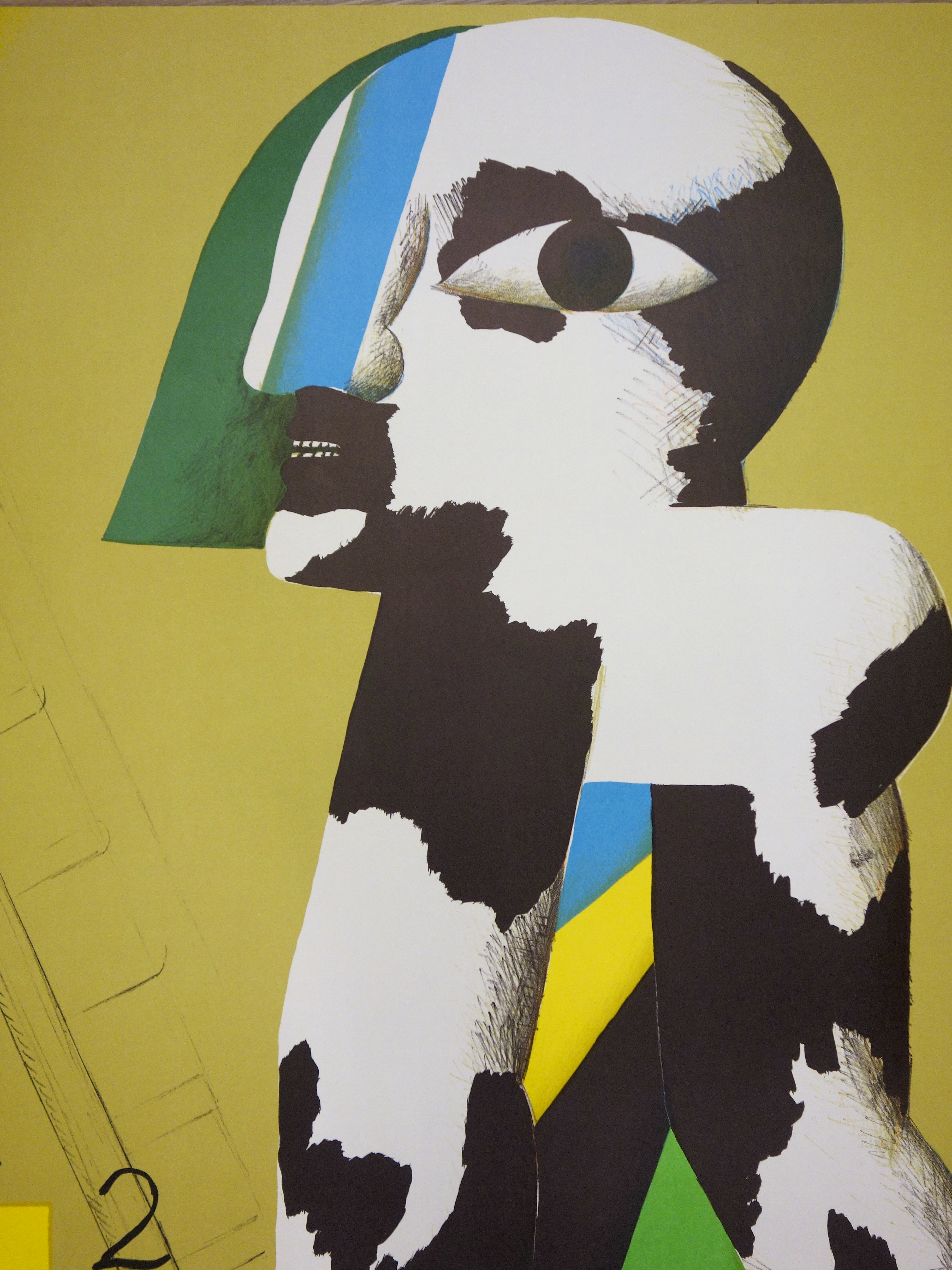 Horst Antes Am Fuße des Podiums Originallithographie In der Platte signiert 101 x 64 cm Lithographie erstellt 1972 für die Olympischen Spiele in München Ausgezeichneter Zustand