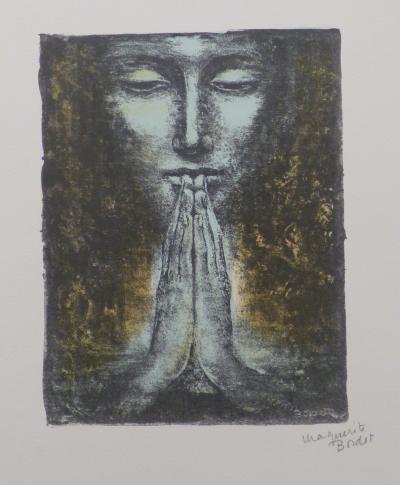 Marguerite BORDET (1909-2014) Gebet, 1980 Originallithographie Vom Künstler mit Bleistift signiert und auf dem Teller Auf Pergament 42,5 x 32 cm