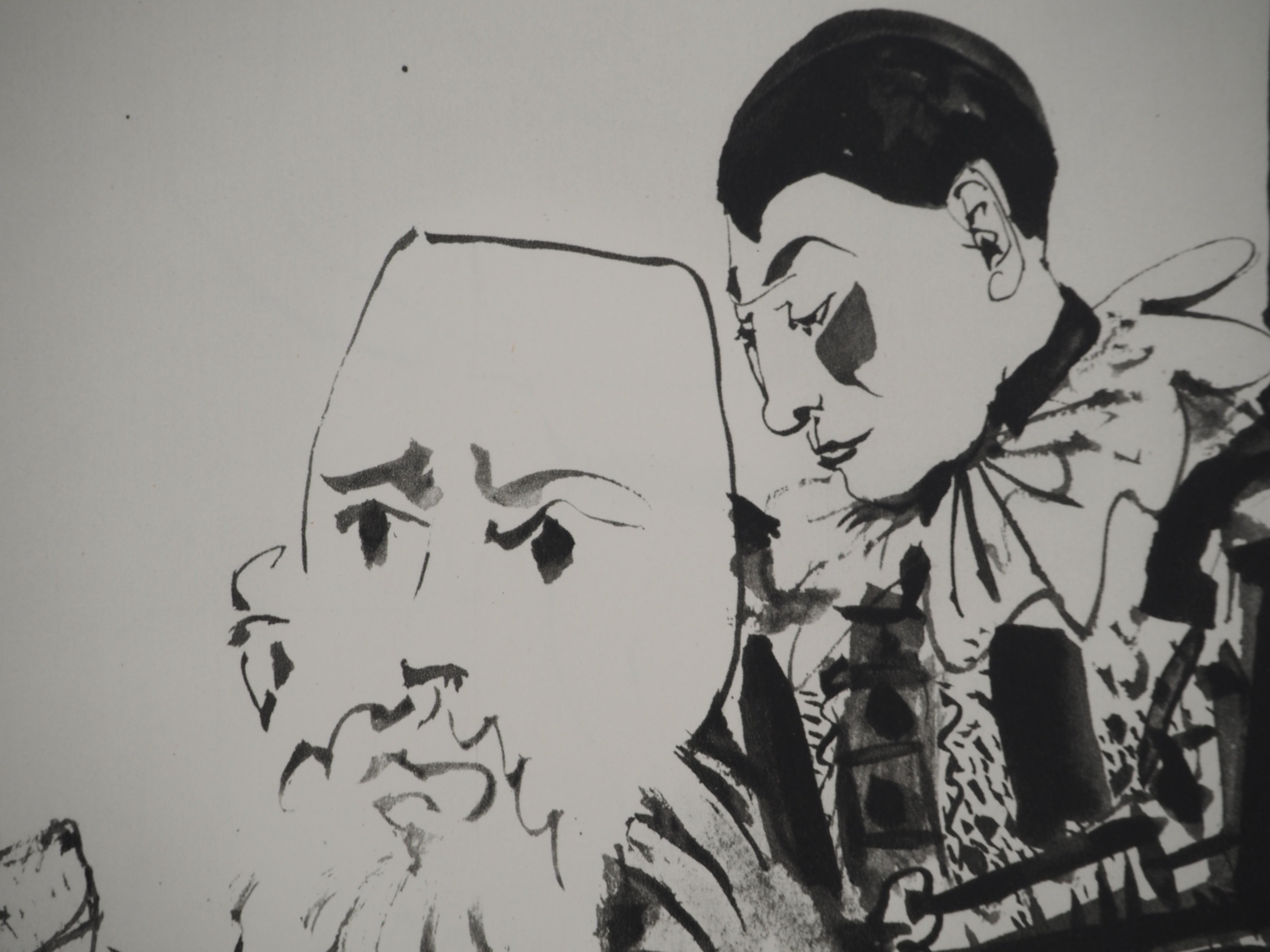 INFORMATIONEN: Veröffentlicht im Verve-Portfolio Nr. 29-30: „Die menschliche Komödie“, mit einer Reihe von Zeichnungen Picassos, die zwischen Dezember 1953 und Februar 1954, während einer Zeit intensiven Schaffens, angefertigt wurden. Die Themen des Künstlers als alter Mann und des Künstlers mit seinem Modell stehen im Mittelpunkt der von Picasso inszenierten „Menschenkomödie“ und spiegeln seine späten stilistischen Anliegen wider.