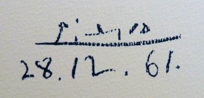 ">Offset-Lithographie (Ton-für-Ton-Druck) nach einer Zeichnung von Pablo Picasso auf Arches Pergament