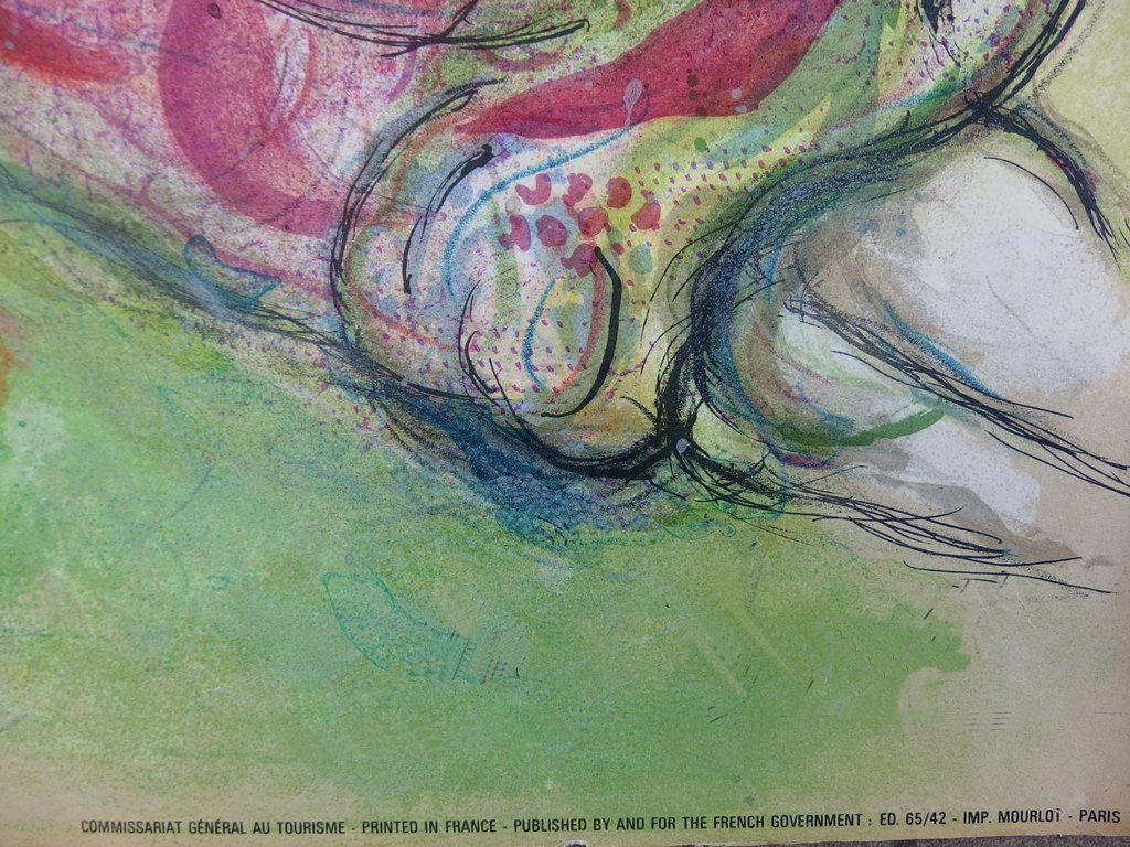 Lithographie gravée par Sorlier (le graveur officiel de Chagall) sous la supervision de Chagall, d'après le tableau réalisé pour l'Opéra Garnier.