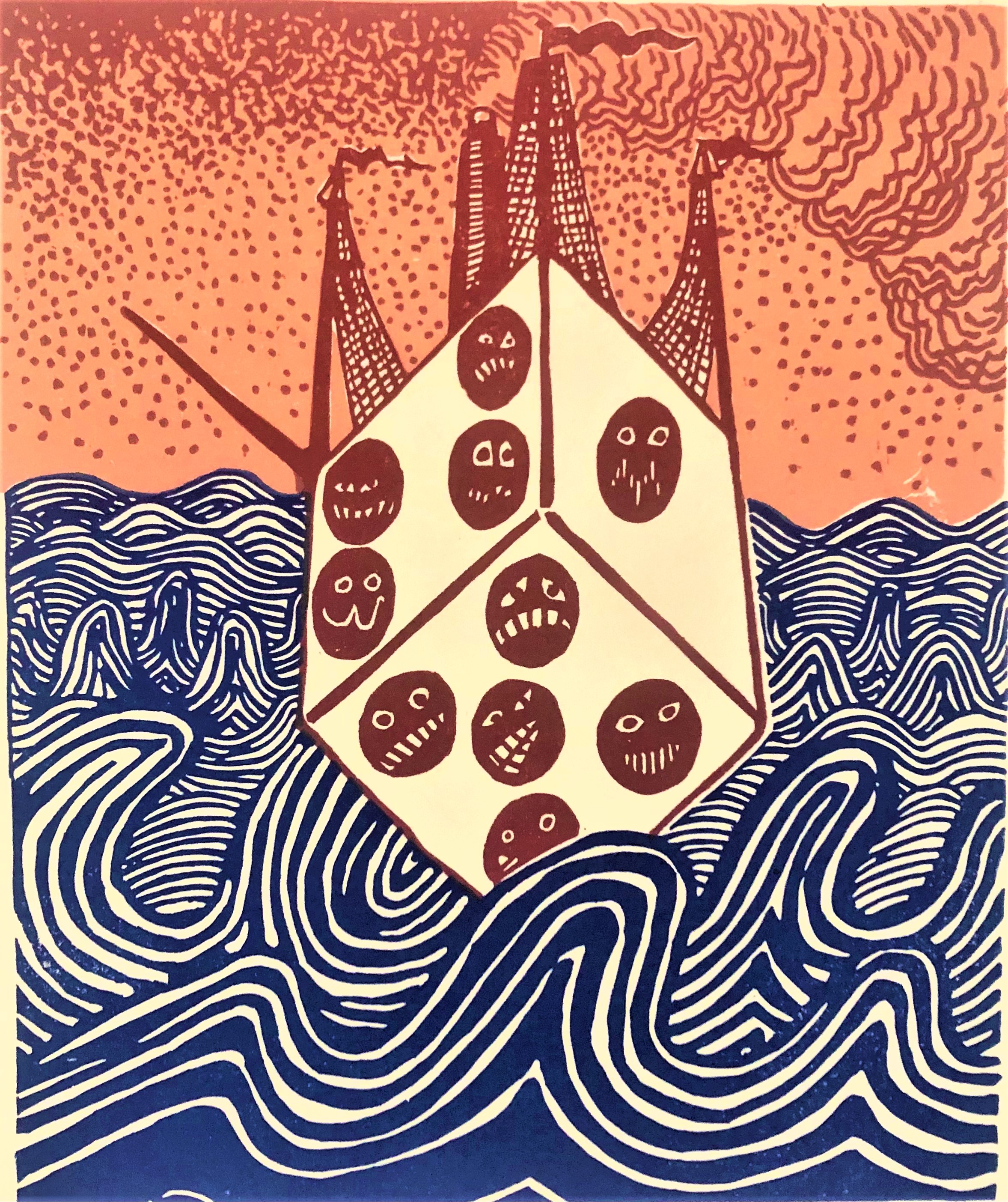 Hervé Di ROSA - Die Würfel: ein Würfelwurf, 2021 - Original-Holzschnitt vom Künstler in Bleistift