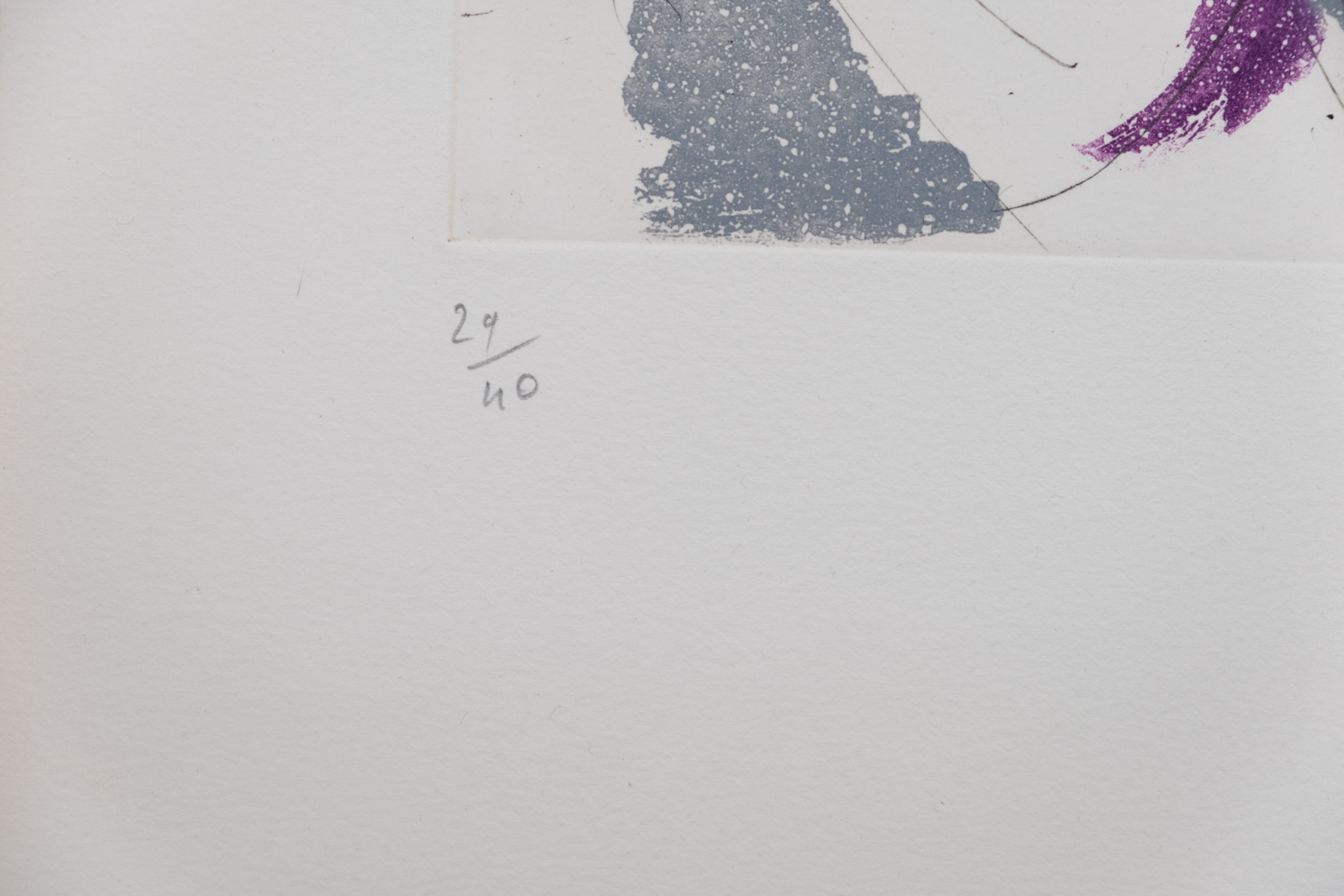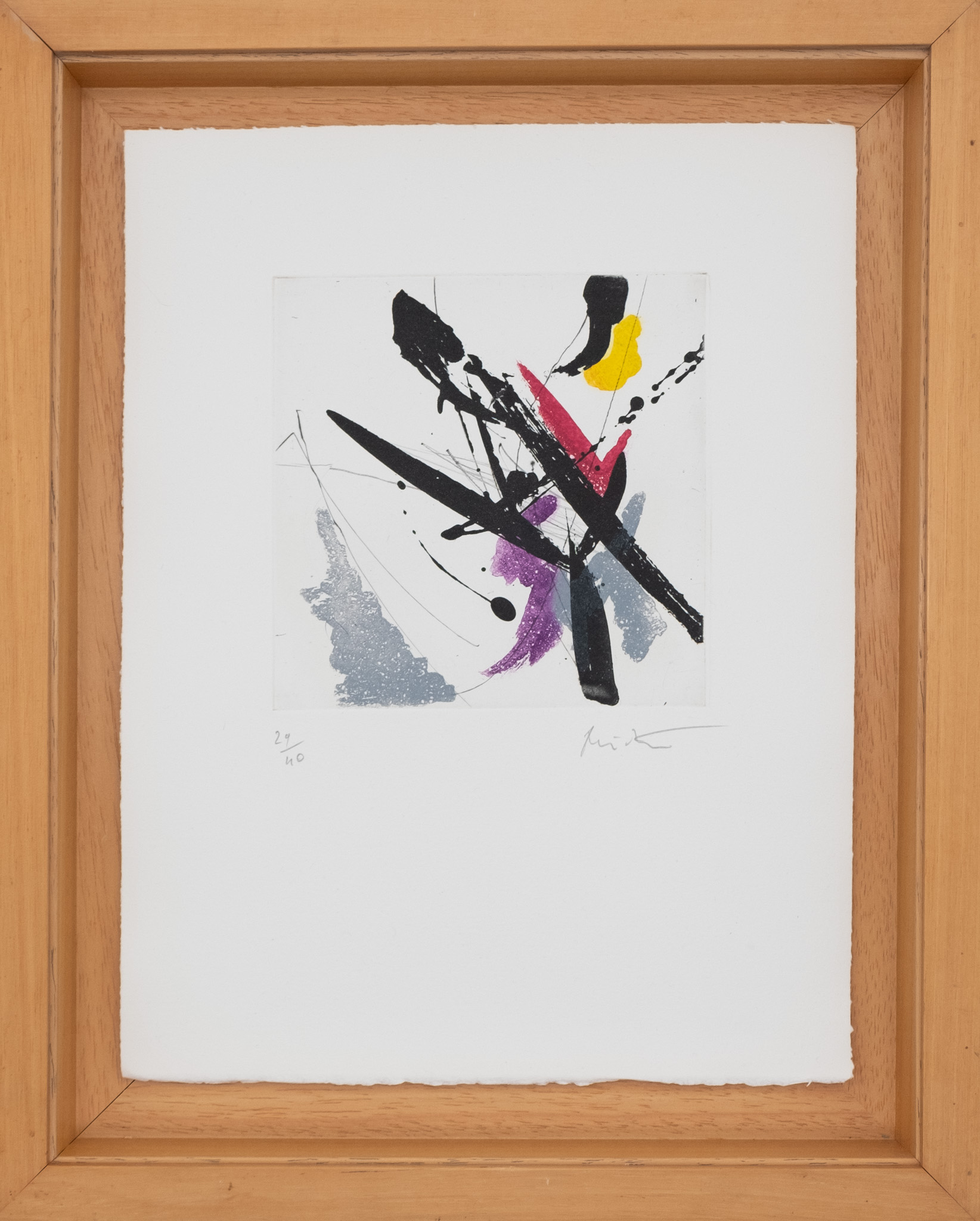 (1926-) is a French abstract painter, in the style known as L'Art Informel. Miotte came of artistic age in war-torn Europe in the decade after World War II, when non-figurative, gestural abstraction was emerging on both sides of the Atlantic as the dominant language in contemporary art. Seeking what has been termed art autre, artists such as Kazuo Shiraga, Jean-Paul Riopelle, Emil Schumacher, and Miotte championed the individual freedom of the artist as expressed through gestural brushstrokes and thick pools of color. As Miotte has commented, “My painting is a projection, a succession of acute moments where creation occurs in the midst of spiritual tension and as a result of inner conflicts.”Miotte’s artistic influences include performance, choreography, jazz music, and particularly ballet. He experiments in media ranging from oil to acrylic, gouache, ink, etching, lithography, and collage. Critics say he is unique among the Informels because he continues to grow, fighting repetition, questioning himself and his form of expression. In 2002, the Jean Miotte Foundation opened in New York, exhibiting a permanent collection of his works.