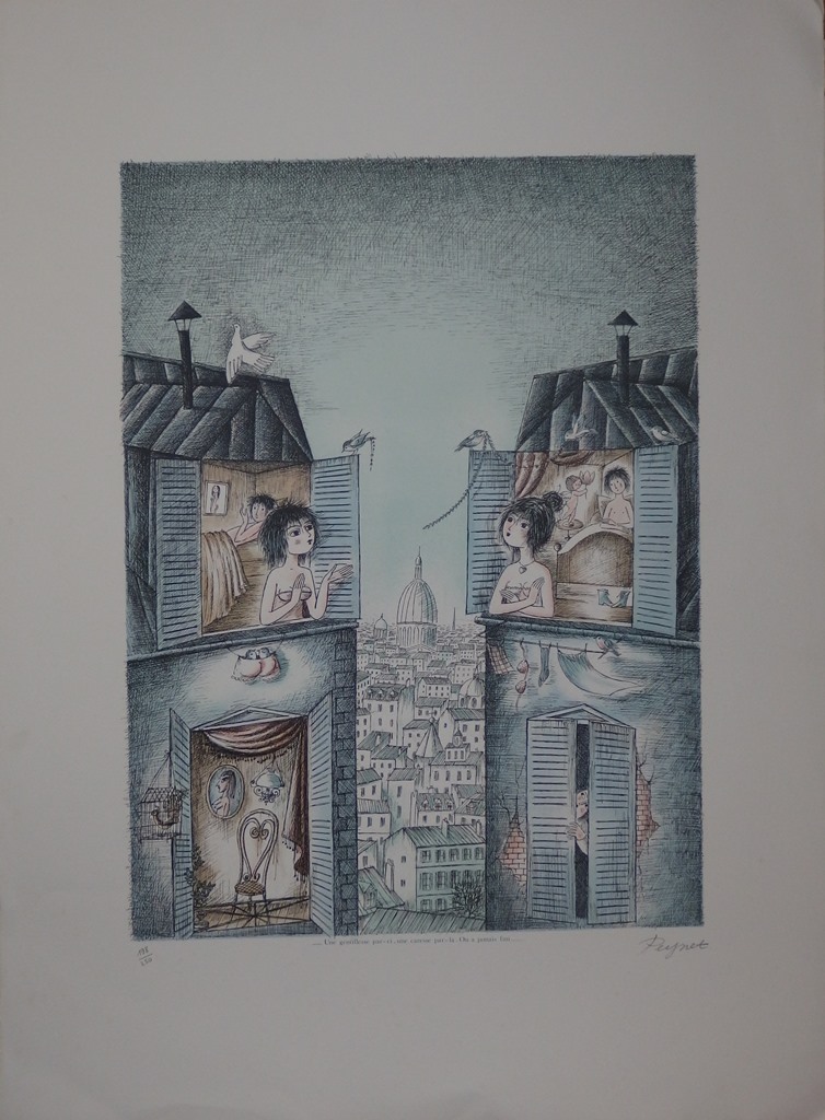Raymond PEYNET - "Les Voisins Amoureux", Lithographie signée