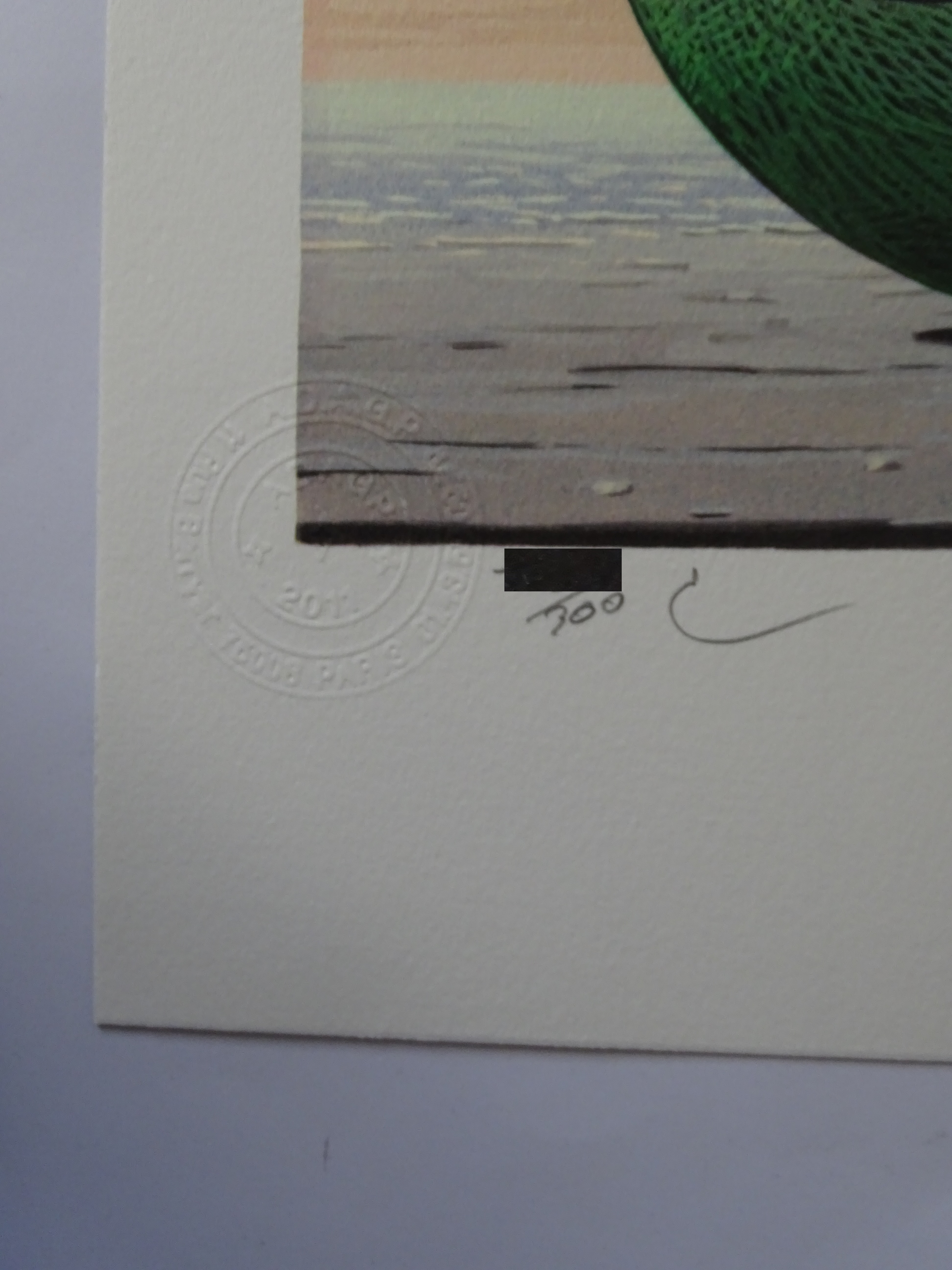 Lithograph realized under the control of the Succession Magritte, authenticated by the blind stamp Succession and hand signed authentication by the president of the Sucession.