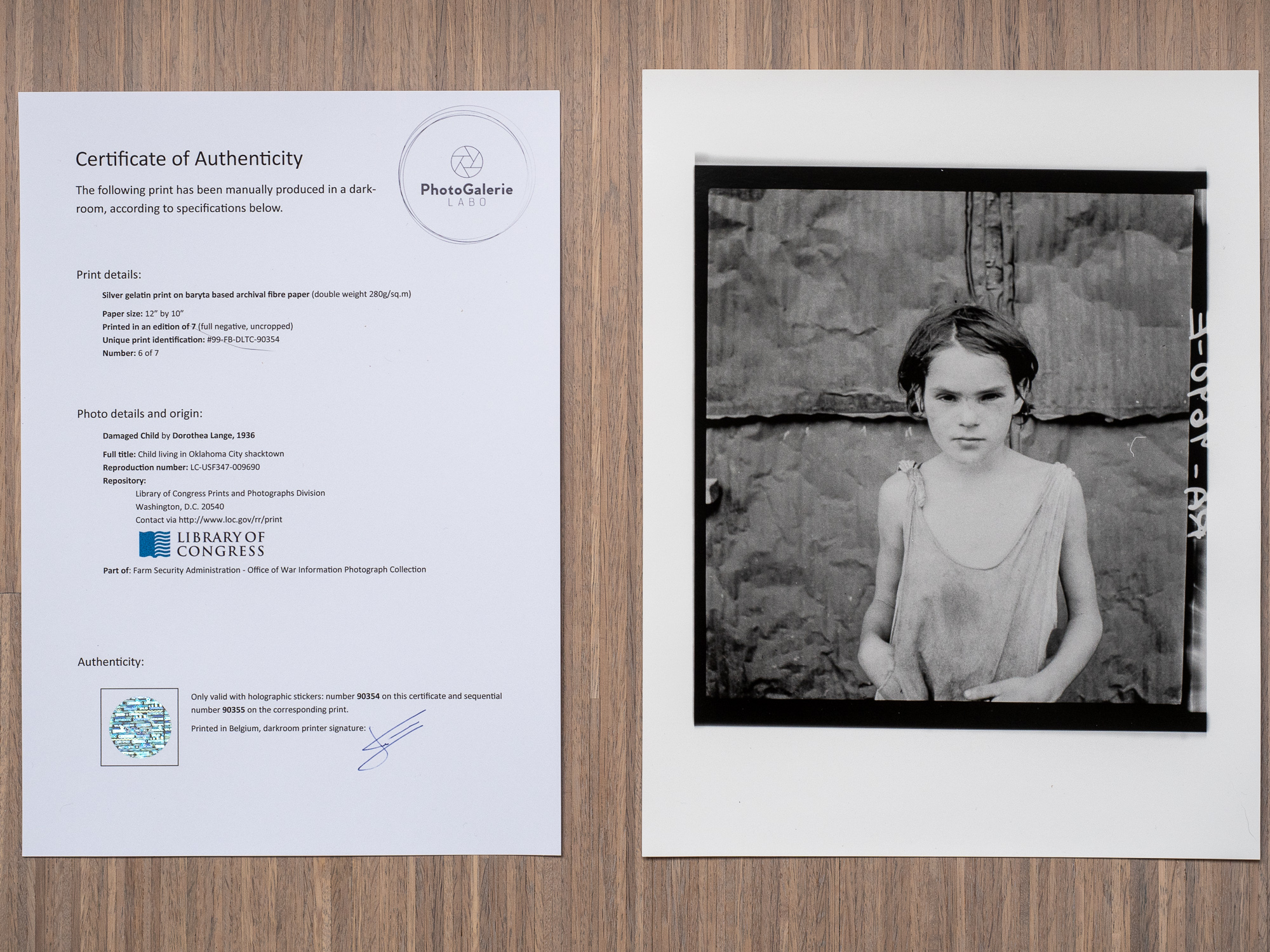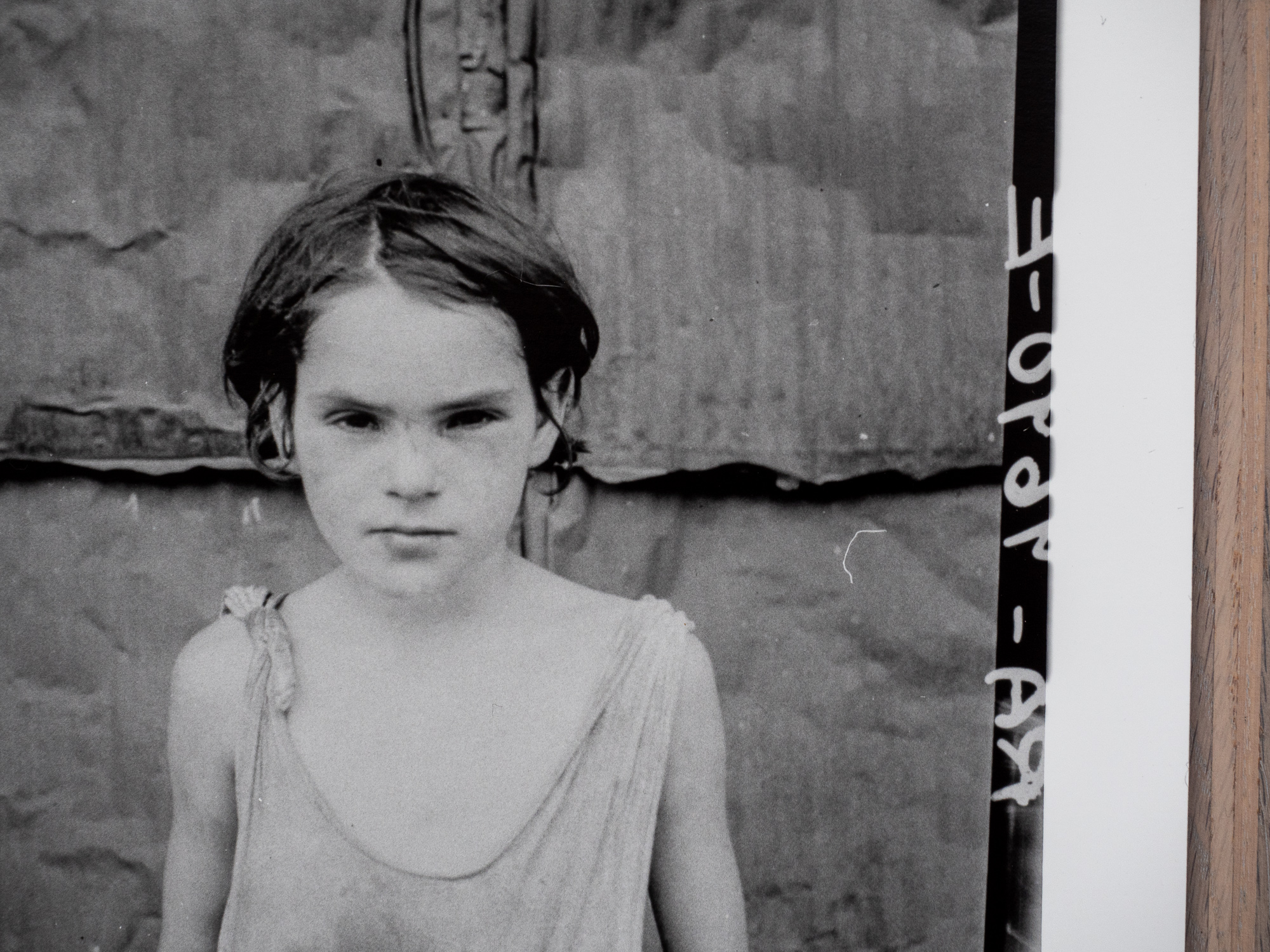 One of Dorothea Lange's most iconic portraits: 'Troubled Child', made in 1936 during the great depression in the USA. This is a silver gelatine print, a numbered edition of 7 from 1999 (sold out for