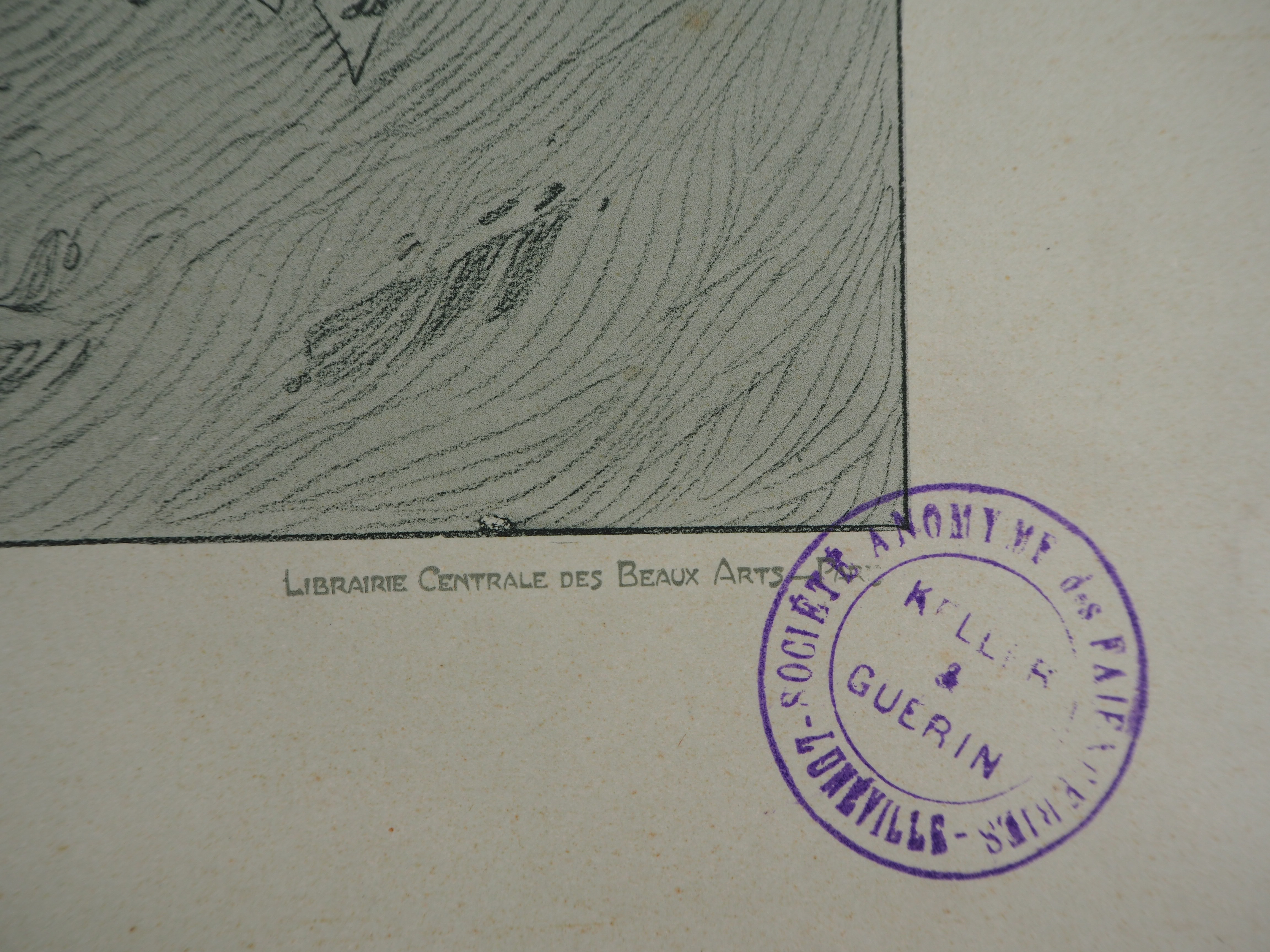 Planche 8 du portfolio "Figures décoratives" publié en 1902 par la Librairie Centrale des Beaux Arts. Portant le cachet de la Faïencerie de Lunéville.