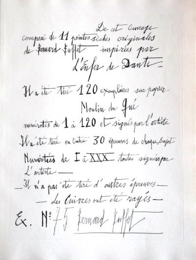 Bernard BUFFET - Dante’s Hell / Dante - Drypoint