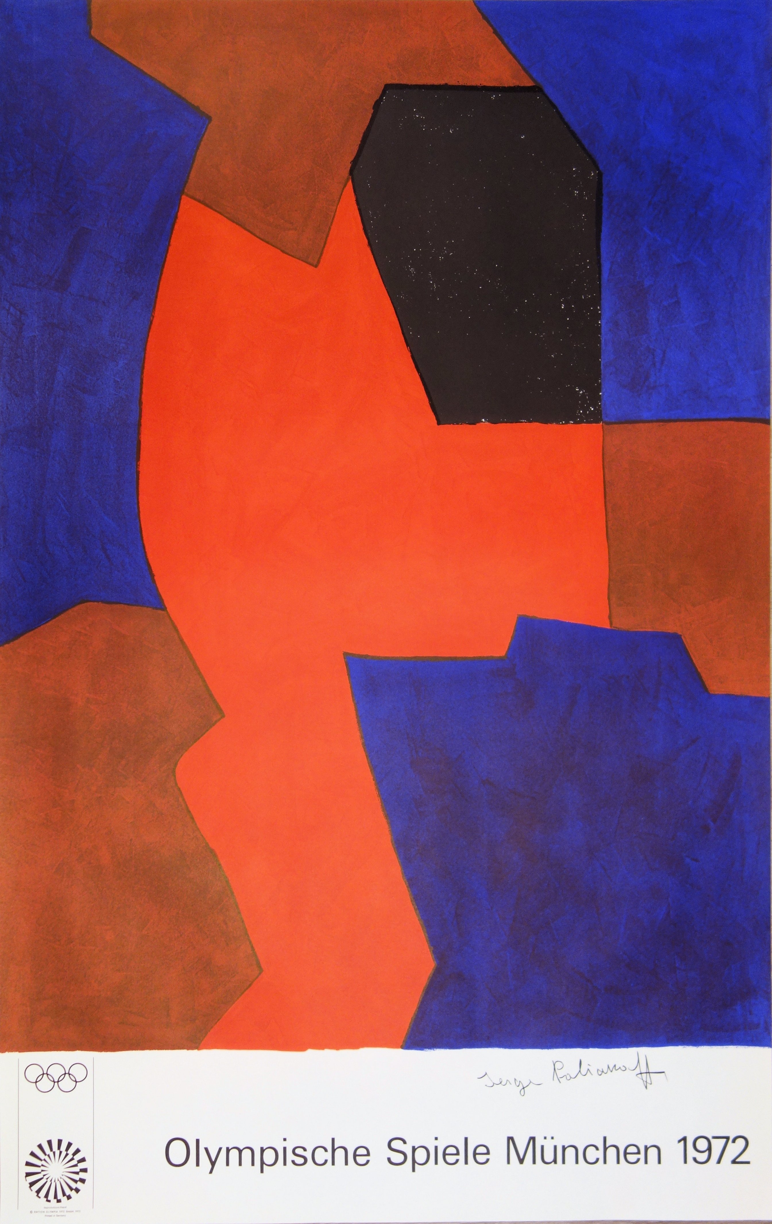 Serge Poliakoff : (1900-1969) is a french painter of russian origins (he was born in Moscow). He belongs to the movement La nouvelle École de Paris. He took his first steps in art at the Drawing School of Moscow. He left Russia in 1918/19, and he arrived in 1920 in Constantinople, surviving thanks to his guitar gift. Going through Sofia, Belgrade, Vienna and Berlin, Poliakoff settled in 1923 in Paris where he would play in Russian cabarets. In 1929, he started going to the Académie de la Grande Chaumière. His paintings remained academic, until he had an artistic epiphany in London: — where he lived from 1935 to 1937 — abstract art and bright colours present on egyptian sarcophagus. He acquainted Kandinsky, Sonia Delaunay, Robert Delaunay, and Otto Freundlich. In 1935, he met Marcelle Perreur Loyd who became his wife, and his most faithful support. His painting progressively got rid of any representation: Poliakoff was soon considered as one of the most powerful painters of his generation. In 1962, a room was reserved for his paintings at the Venice Biennal and Poliakoff is naturalized french the same year. His works are present in most of the biggest european and american musems. Poliakoff also worked with céramics at the Manufacture nationale de Sèvres. Notably, he encouraged Arman to start painting. In 1965, Yves Saint Laurent signed Poliakoff dress and a Mondrian dress. In 1970 took place his first exhibition at the Musée d'Art moderne de la Ville de Paris. In 2006, Poliakoff was part of the painters gathered at the Musée du Luxembourg (Sénat) for the exhibition "L'Envolée lyrique, Paris 1945-1956". In 2013, the Musée d'art moderne de la ville de Paris dedicated an exhibition to the artist: an important retrospective of 150 worksmade between 1946 and 1969. The same year, the gallery Applicat-Prazan exhibited around 20 works at the 40th edition of FIAC.