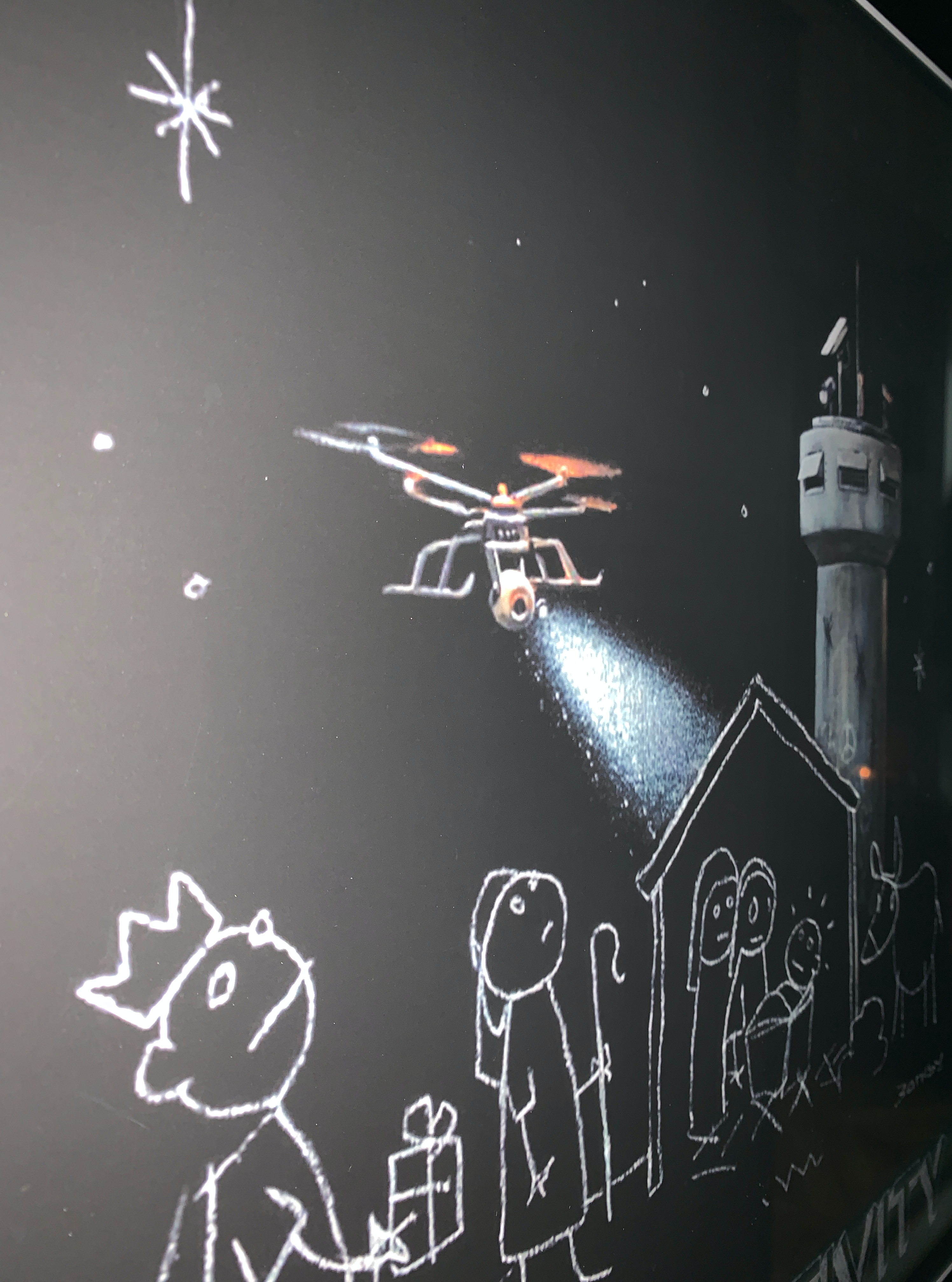 Probably born in 1975 in Great Britain, he really began his work as a graffiti artist within the Bristol's DrybreadZ Crew (DBZ) group. Banksy is a revolutionary and subversive artist, uses his art as a true means of communication to proclaim his dismay, dissatisfaction, sadness or revolt. Each time the artist visits a city, it is a real event and generates media interest. Banksy uses stencils to design his creations, each of them is meticulously worked and detailed in order to give his creations a depth and soul. He wishes to remain anonymous in the image of graffiti, which is a hidden art and realized in secret.