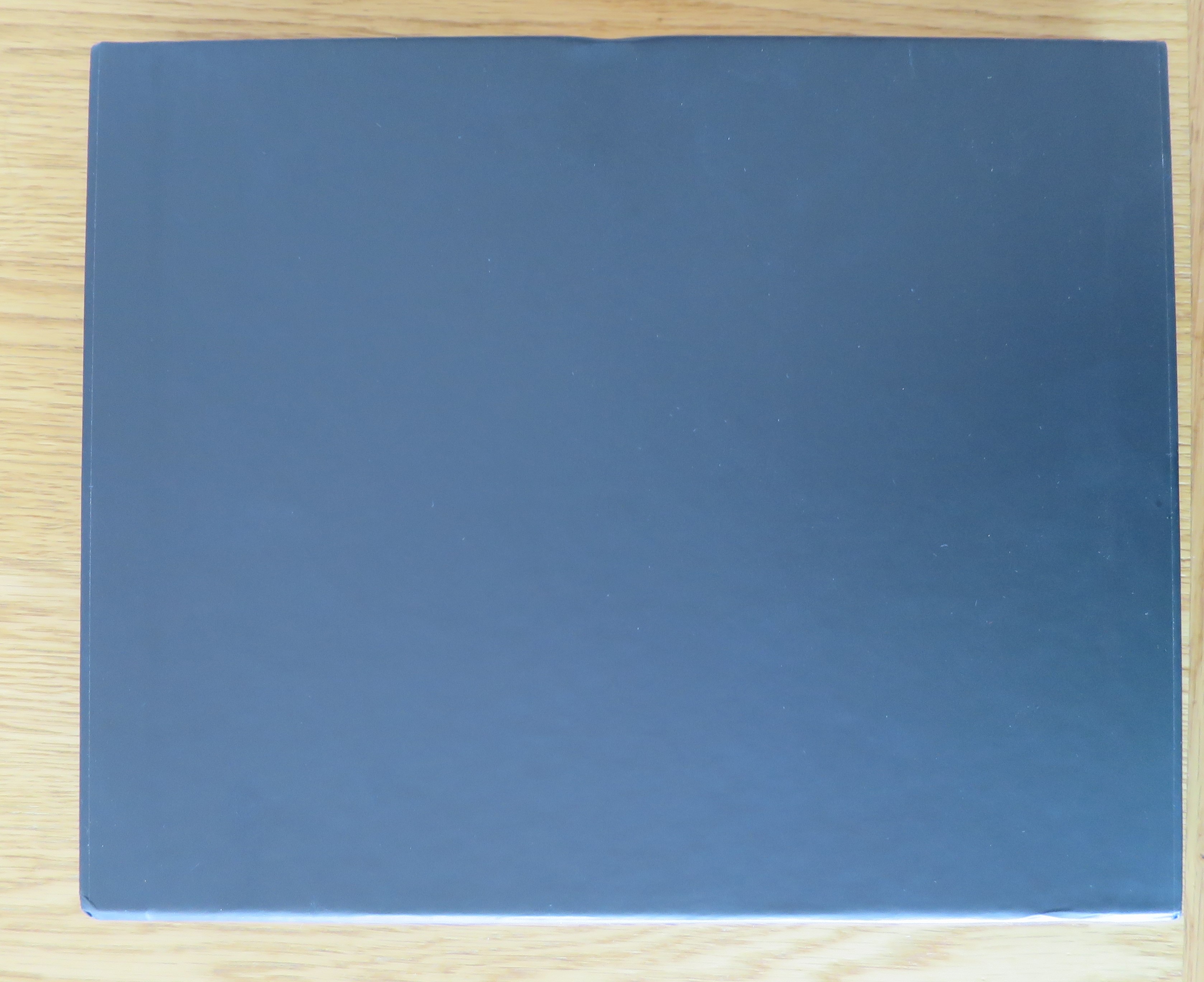 Black border colored hardcover book in sturdy black slipcase with gold leaf and UV Spot varnish