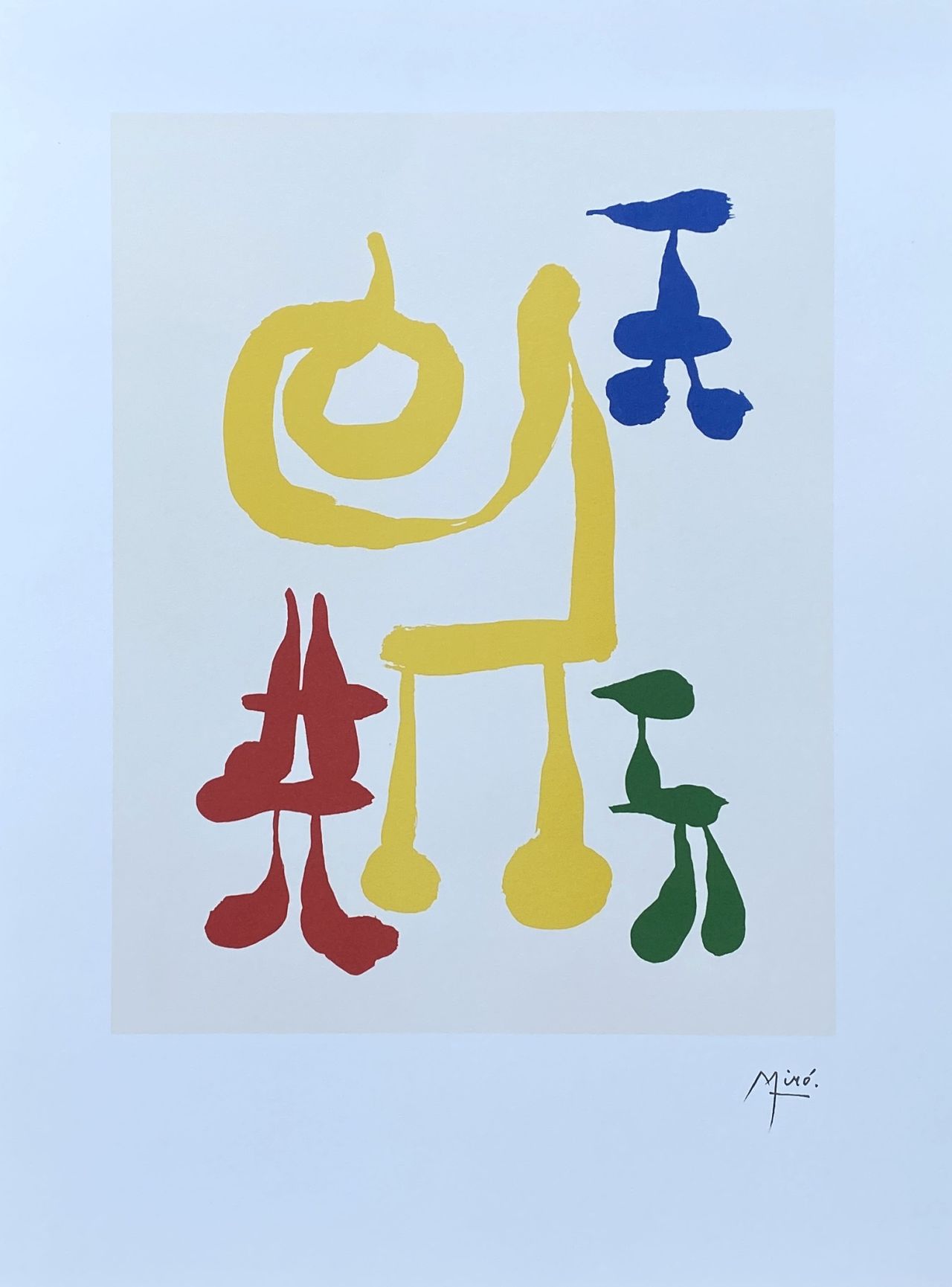 Miró discovers cubism and fauvism in Paris where he lives in 1920 and meets up with Pablo Picasso, André Masson and dadaïst members, before he become a member of surrealism. He completes his series of "Constellations" (1940-1941) at Palma de Mallorca where he stays in 1956. In 1942, he comes back to Barcelona then to United States five years later and begins monumental painting ("Composition with ropes", 1950, Eindhoven). From years 1960, his paintings show a new space research, often monochrom ("Blue I, II, III", 1961). His latest works are monumental statues for Chicago (1981), Houston and Barcelona (1982). The artist died in Palma de Mallorca in 1983.