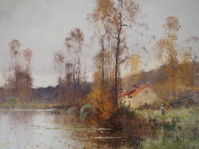 Eugène GALIEN-LALOUE - Old farm near the river - Oil on canvas, Signed