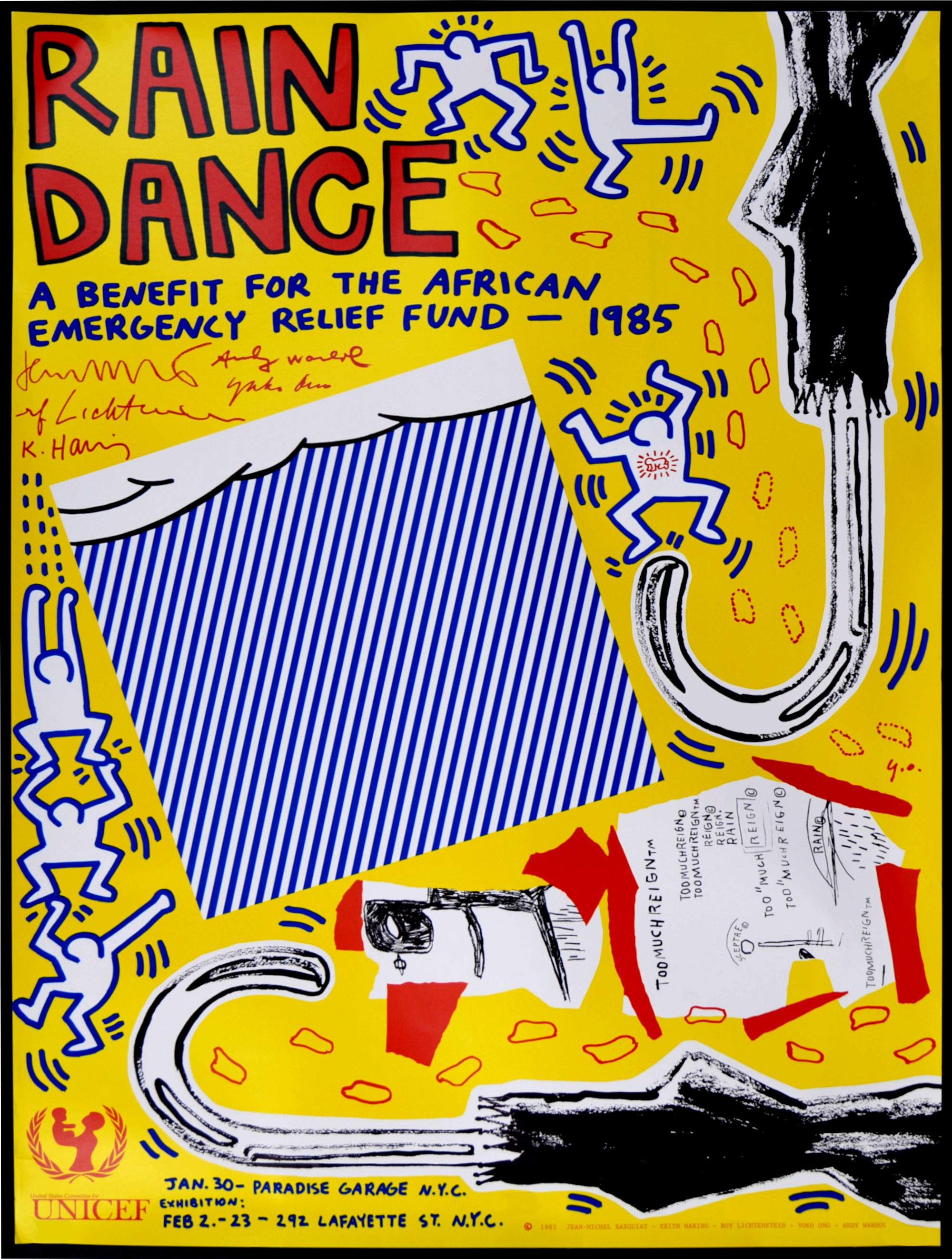 1984 was the year of the terrible disaster in Africa. Keith Haring organized a charity event to benefit UNICEF as a response, for which the present artwork was designed.