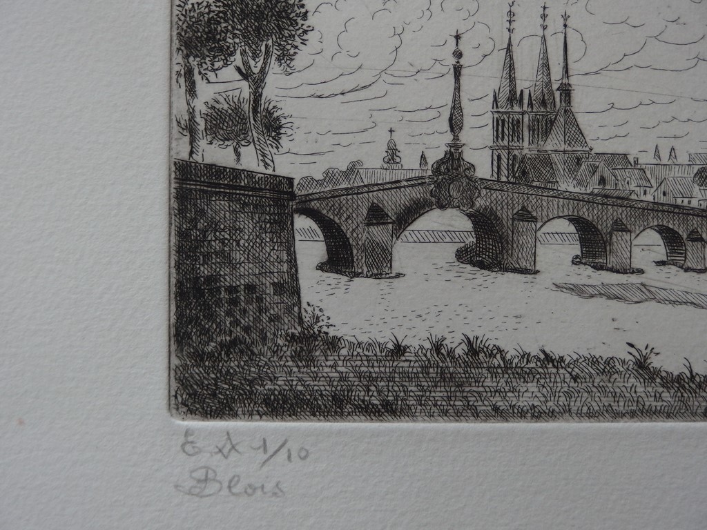 Gilbert POILLERAT Blois Grabado original Firmado abajo a la derecha Prueba de artista 1/10 Vitela 16 x 25 cm ESTADO: Excelente