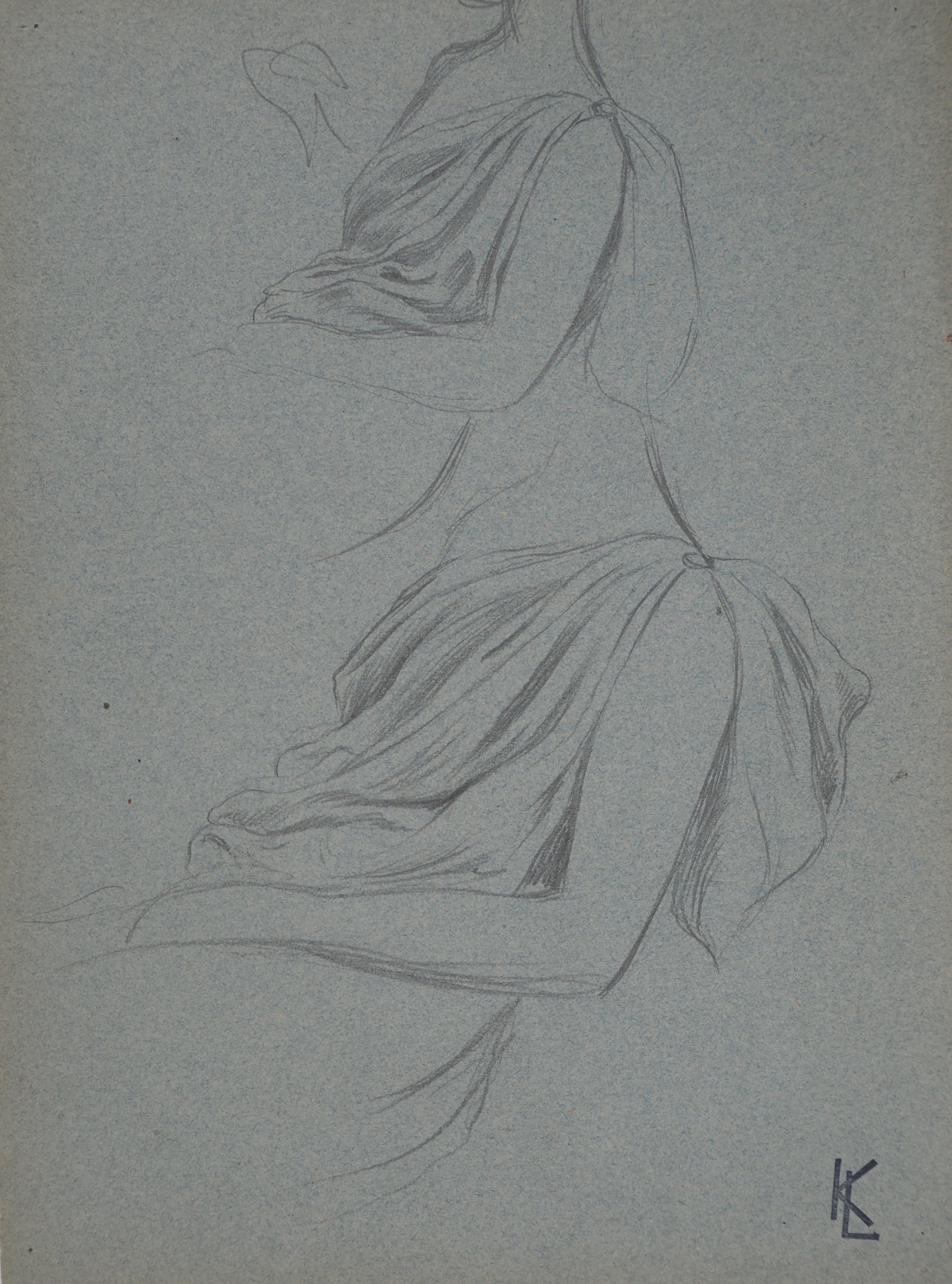 Dessin original à la mine de plomb réhaussé au pastel blanc