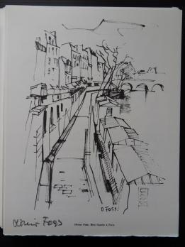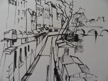 Olivier FOSS Rive Gauche en París, 1961 Original heliograbado sobre papel Arches Vellum Firmado a lapiz Esta hoja forma parte de la edición de Pintores testigos de su tiempo como una de las 56 ilustraciones del libro Rutas y caminos de Jean Giono Dimensiones 27 x 21 cm Excelente estado