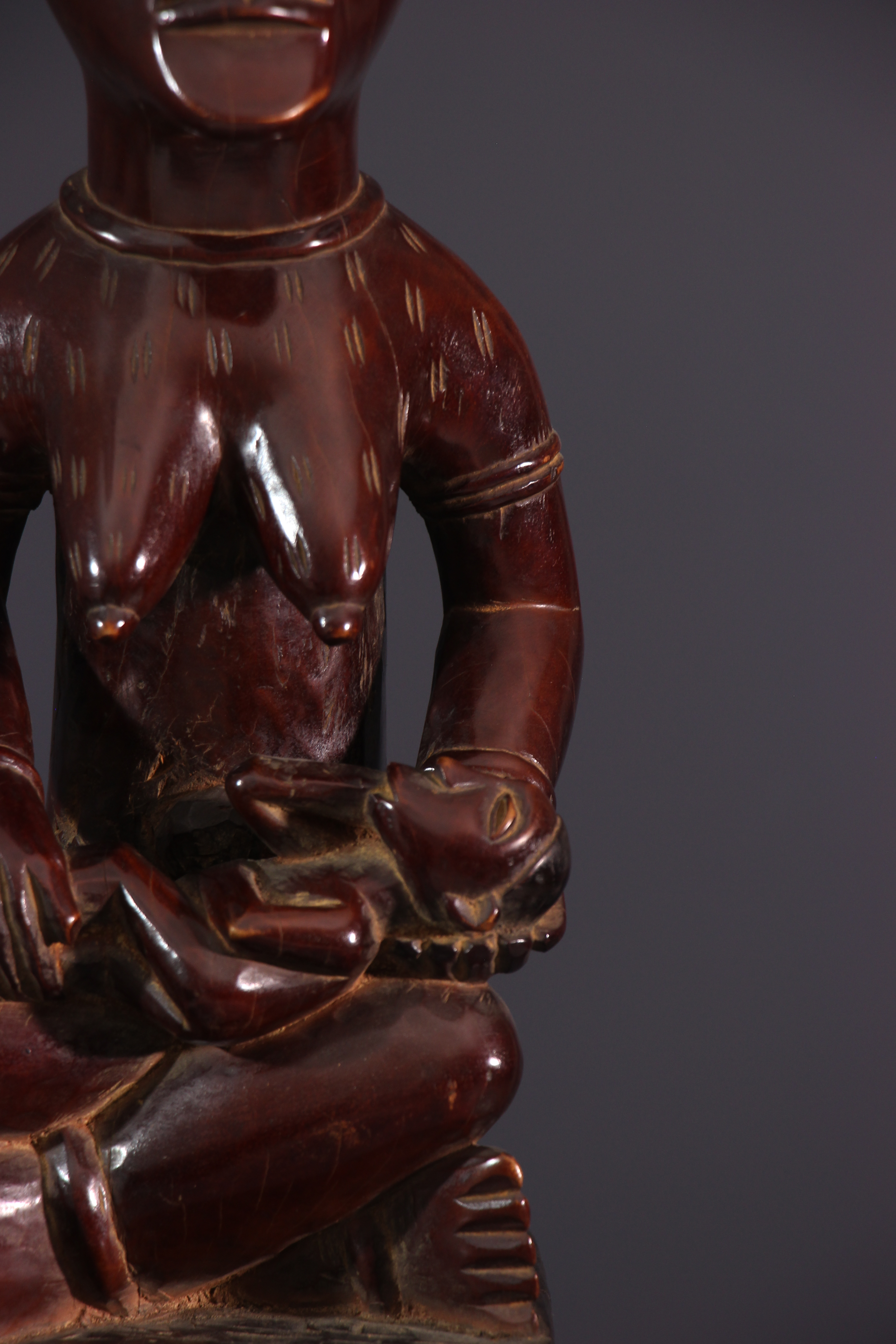 La fécondité et la descendance, thèmes centraux des cultures africaines, sont abordés au travers de cette maternité ou phemba. La mère est assise et tient dans ses bras un enfant.