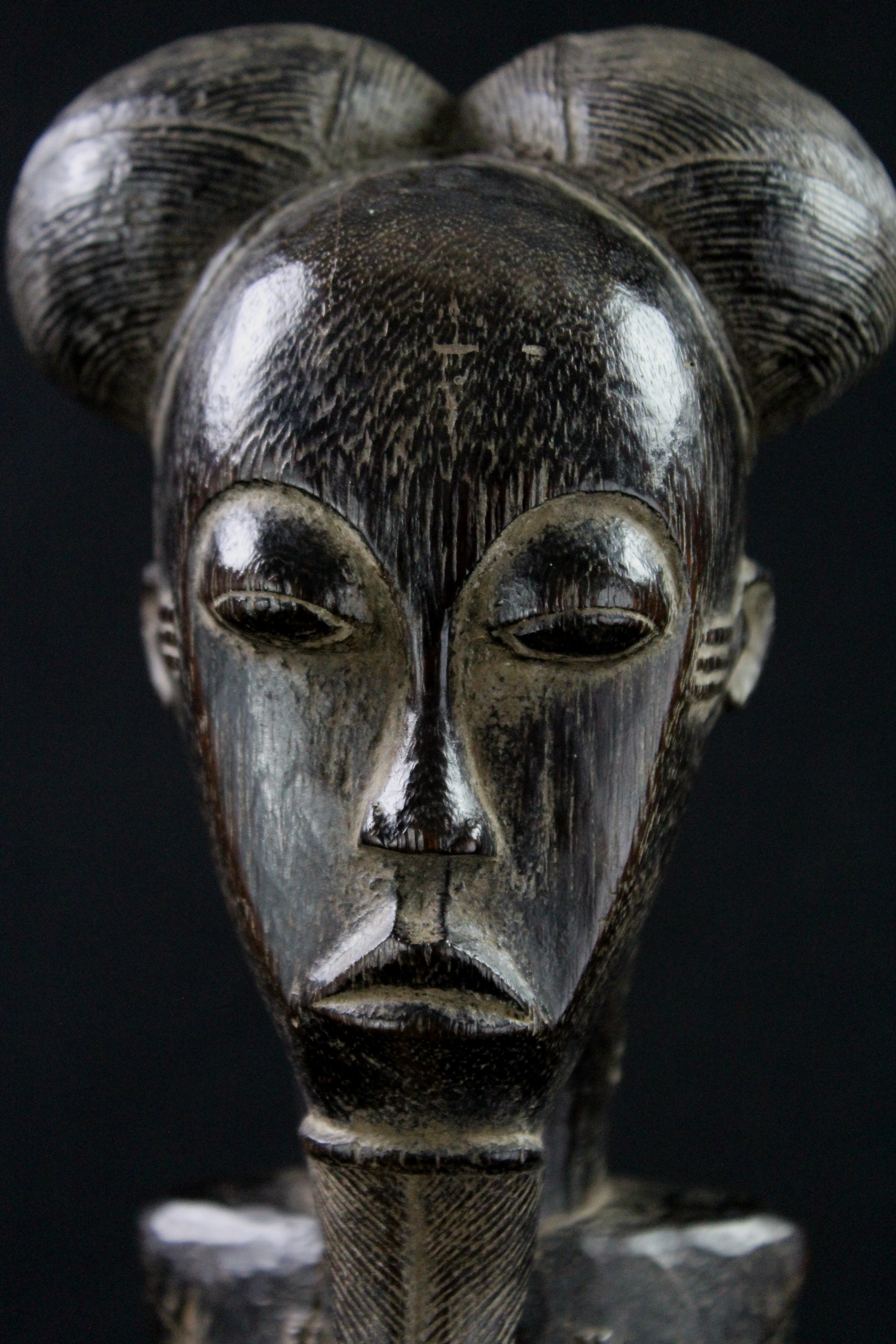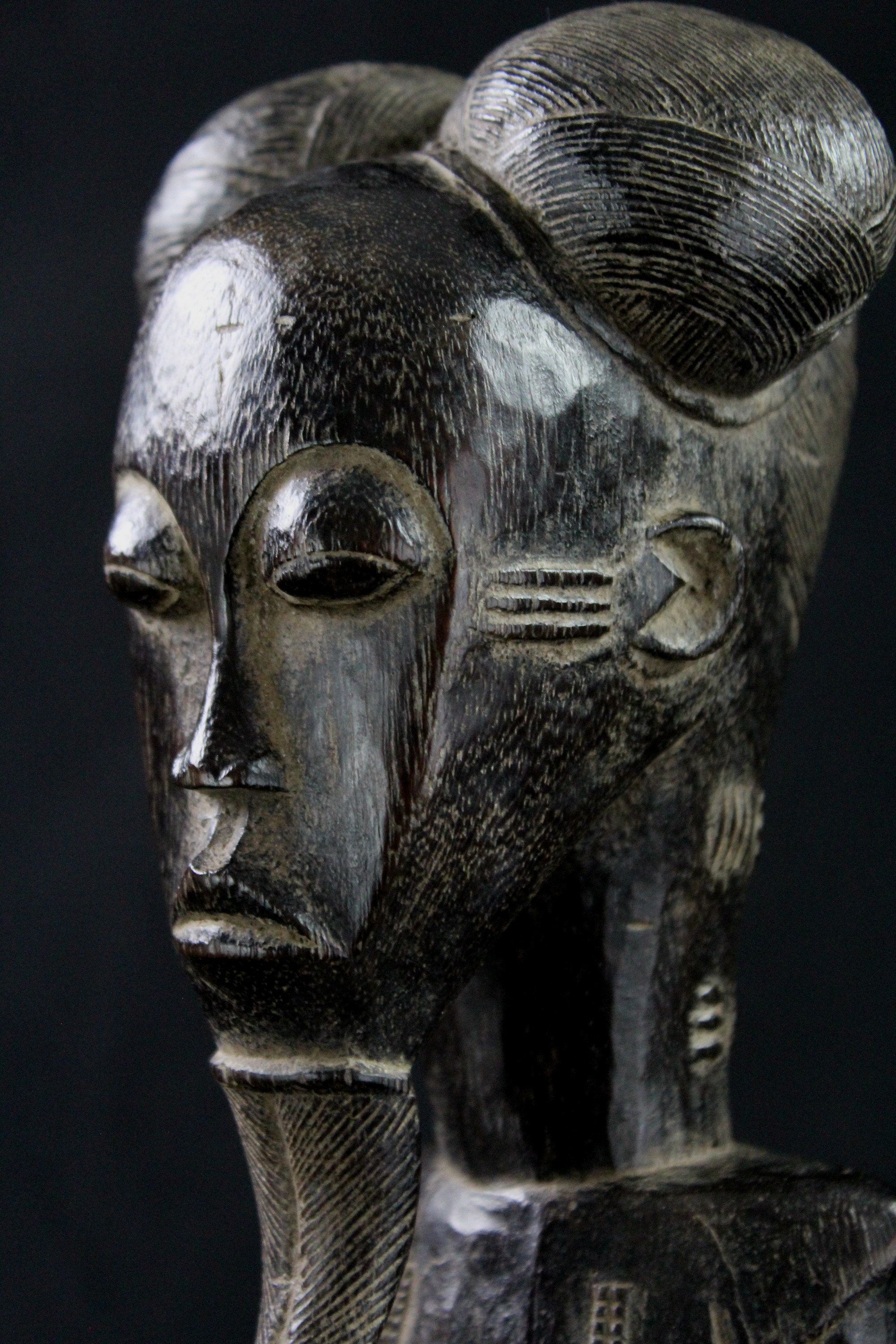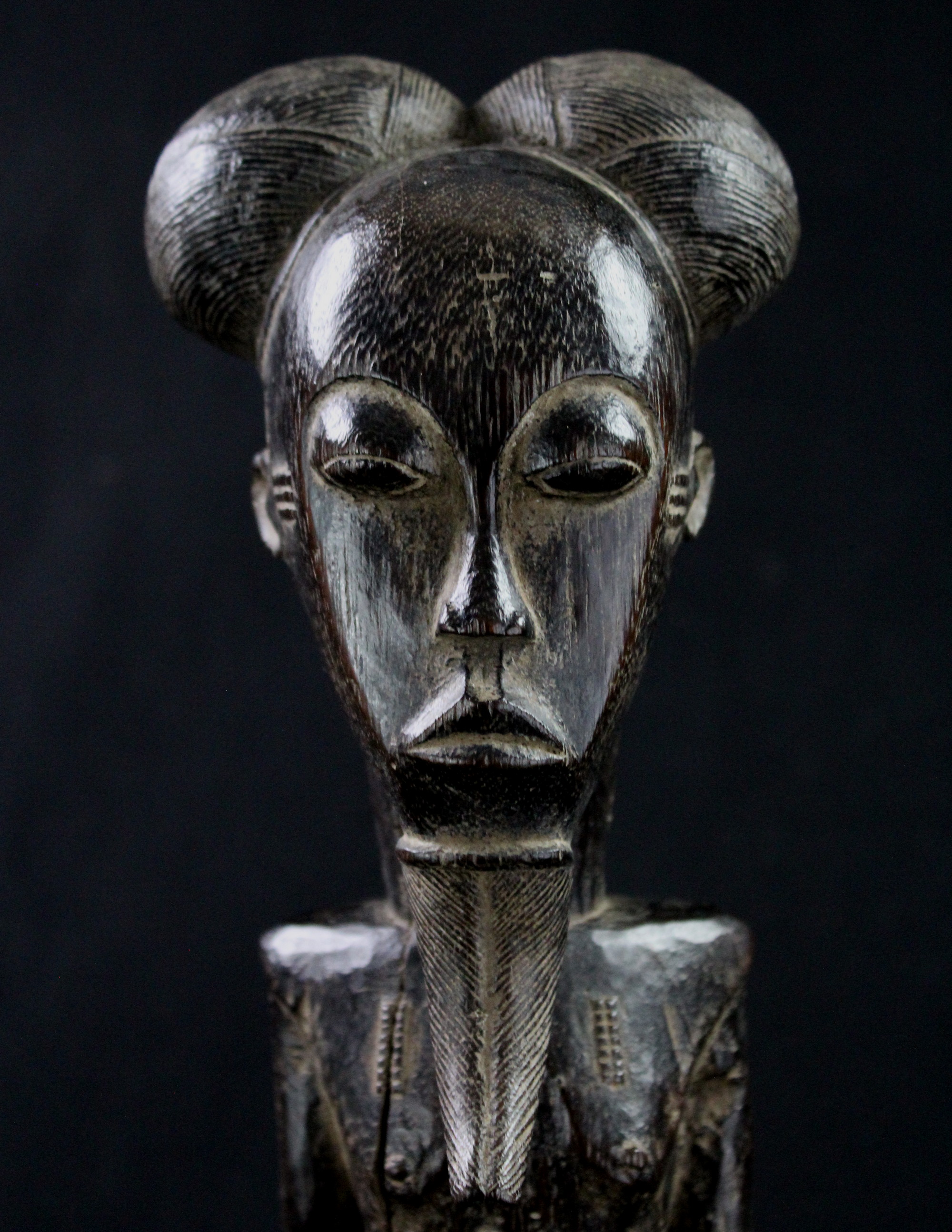 Expression d'une grande sérénité, dans un pur style Baoulé de la région de Sakassou, épicentre de la culture Baoulé.