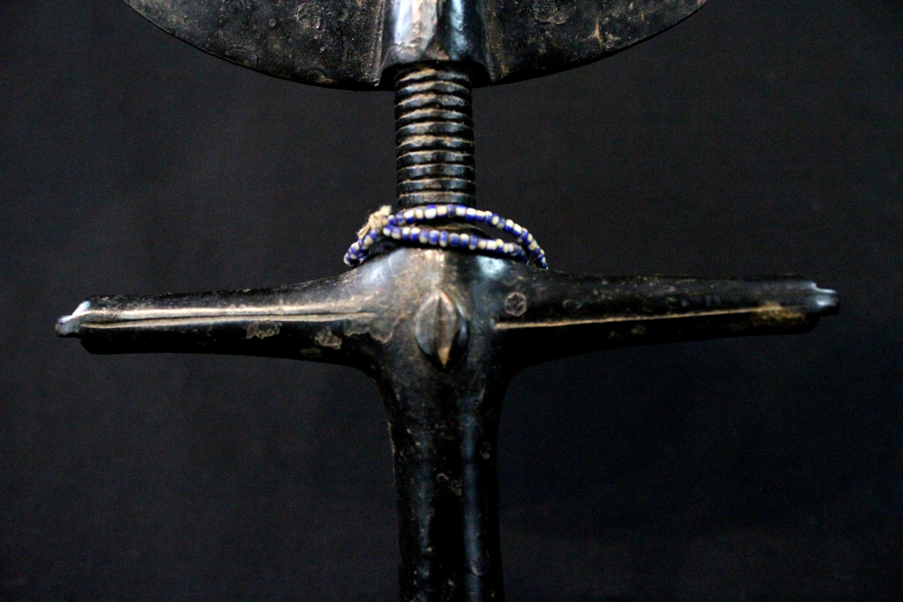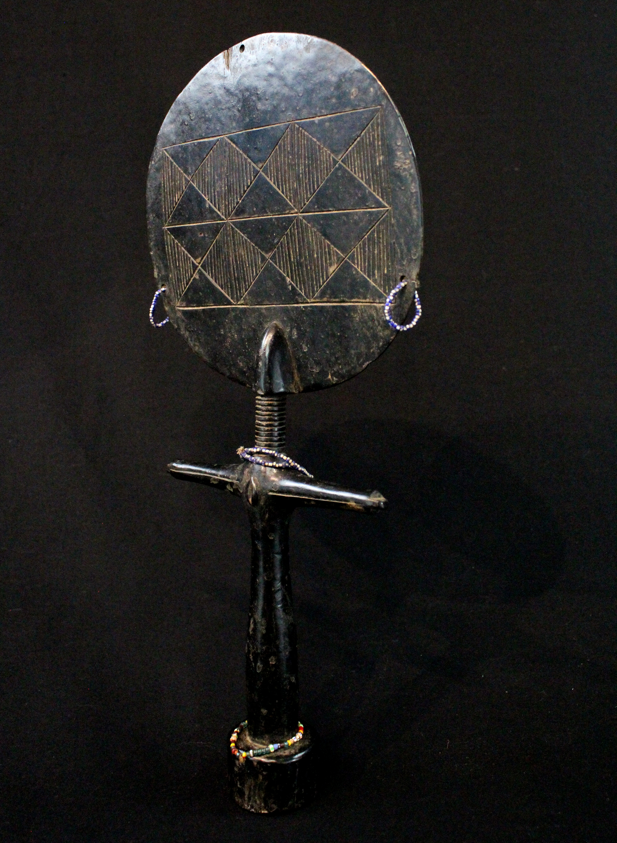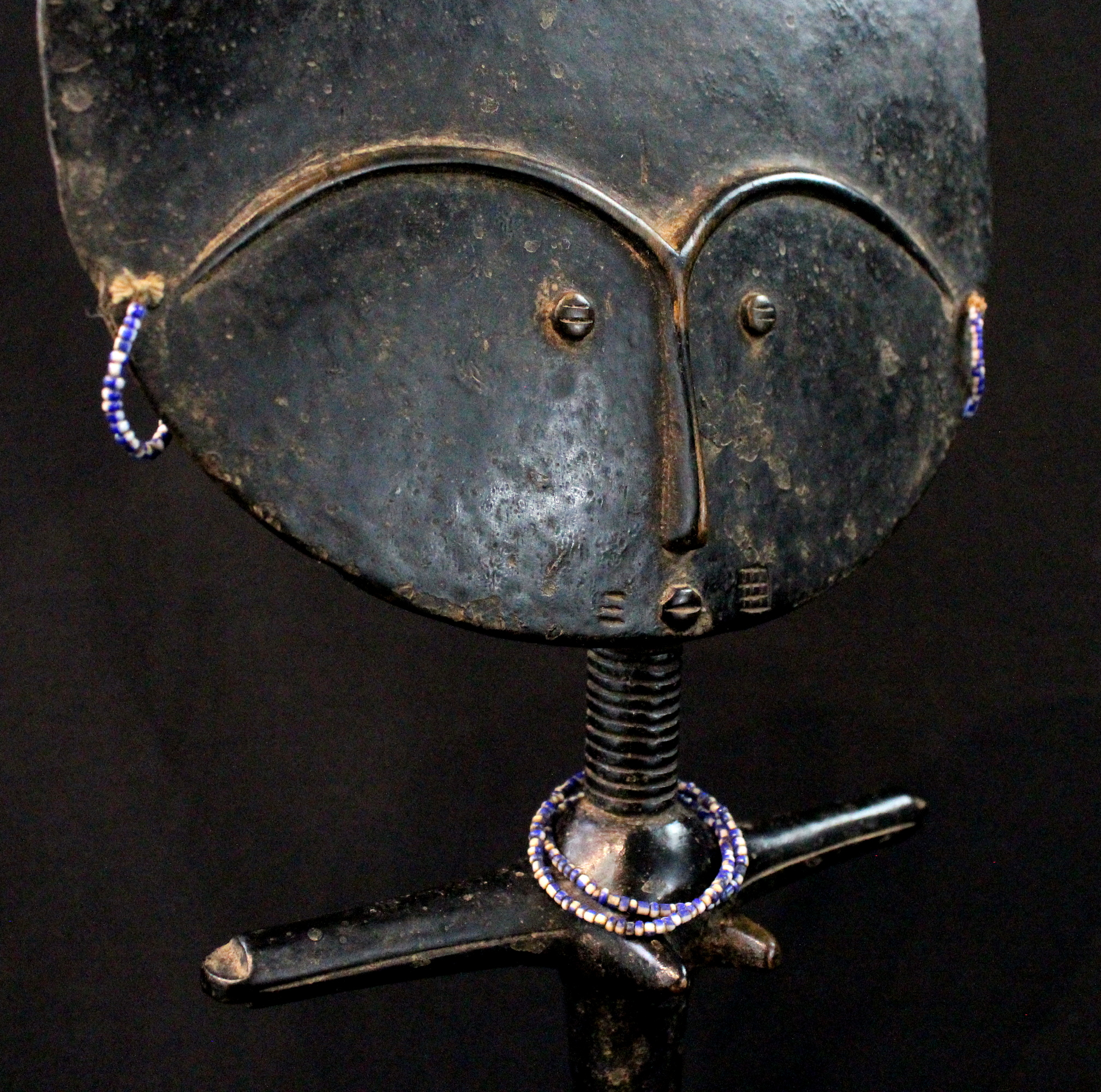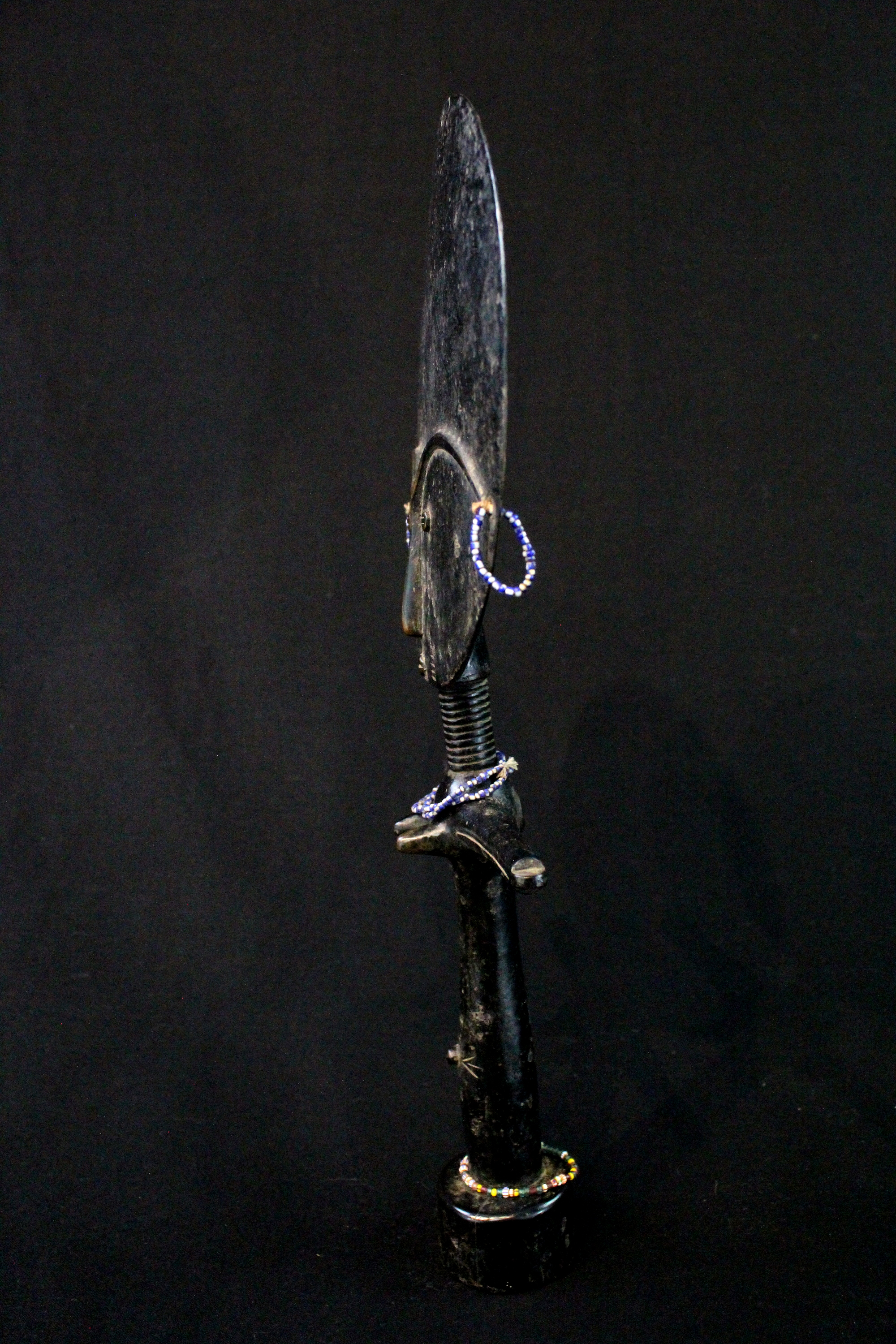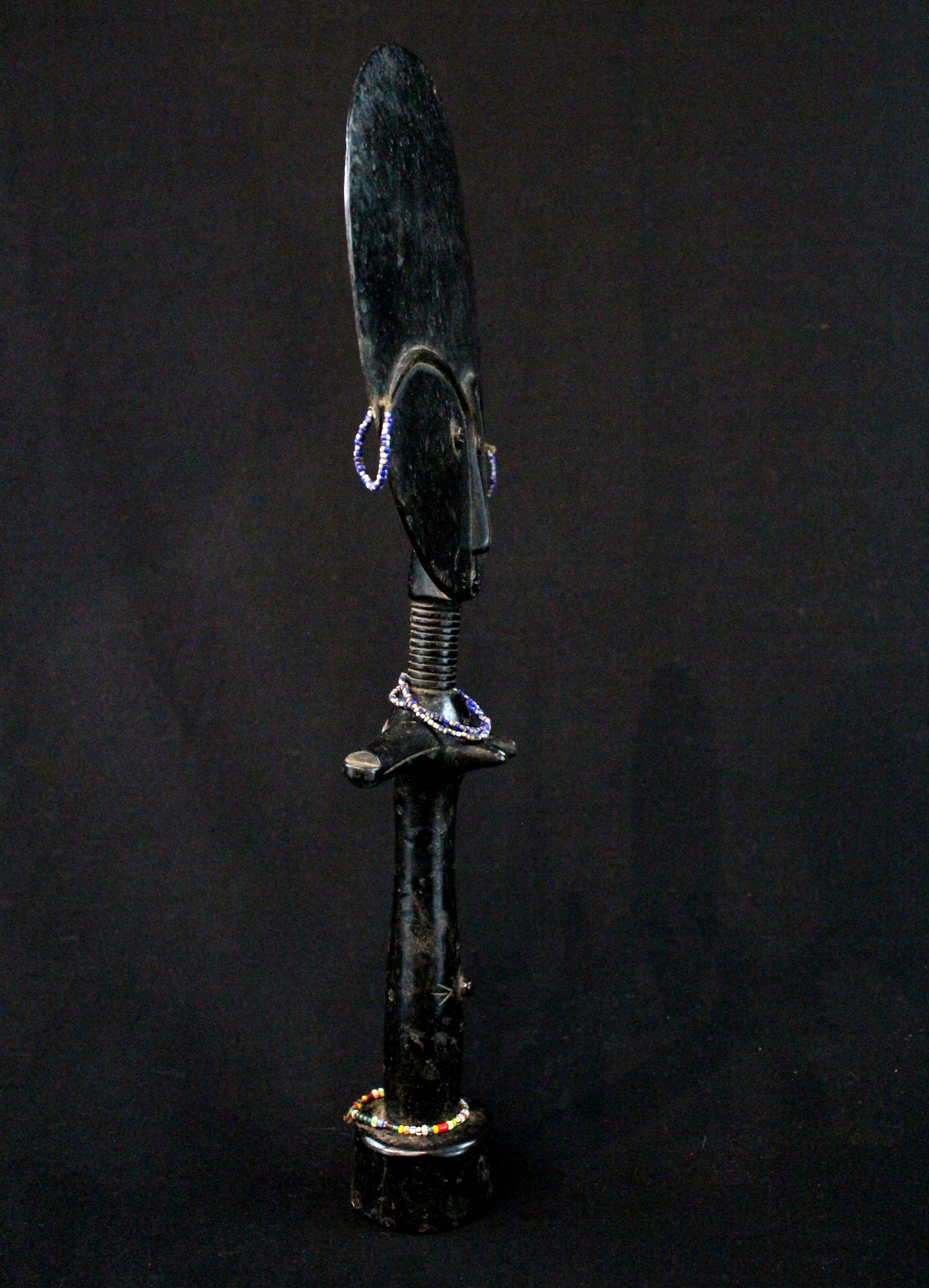 Muñeca Ashanti, llamada "Akwaba" (que significa "bienvenida" en la mayoría de los grupos étnicos "Akan") o más comúnmente "muñeca de la fertilidad". Encontramos en esta estatuilla la cabeza ovoide, el signo más identificable entre las muñecas Ashanti.