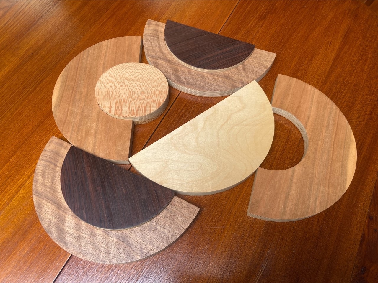 Différentes essences de bois (étable, sycomore, noyer, palissandre des Indes, platane et merisier)
