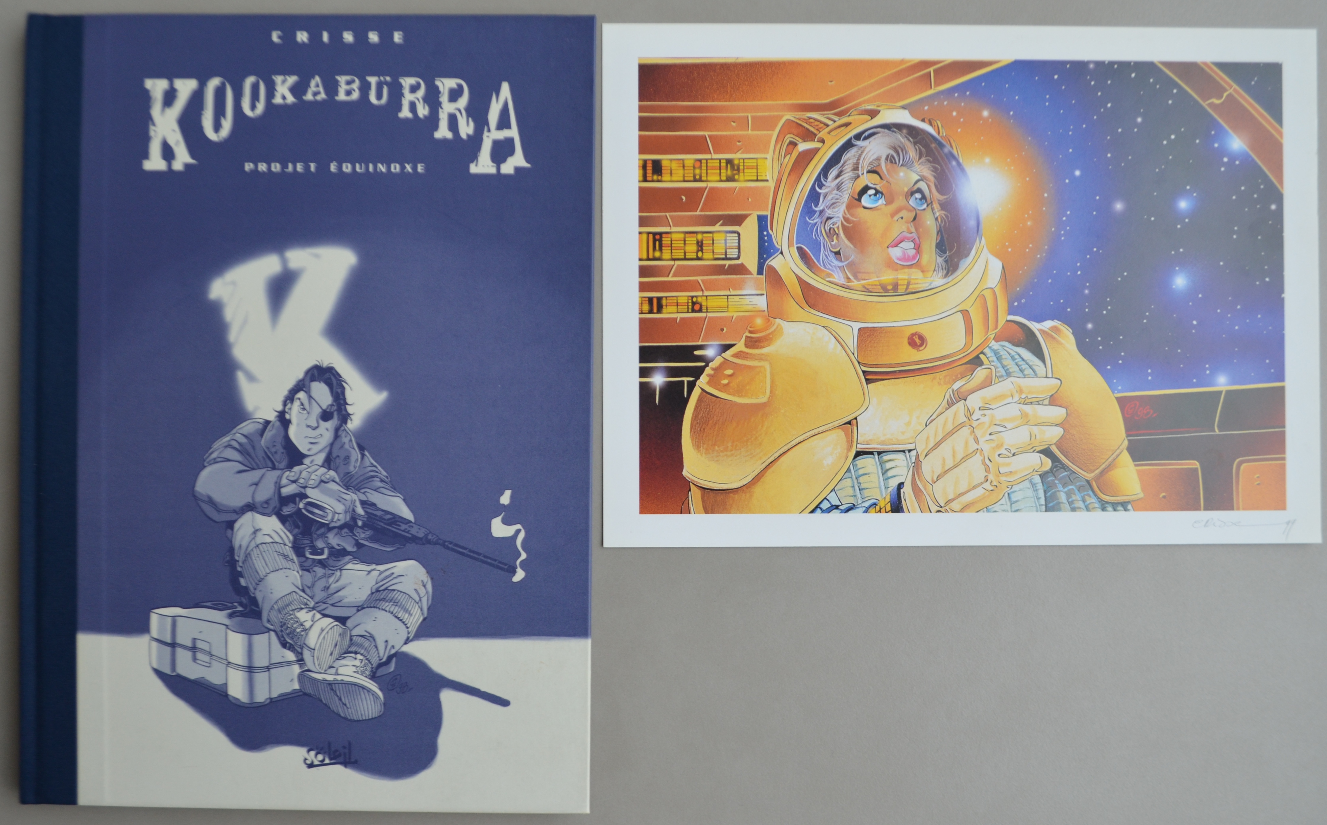 Crisse Kookaburra T3 - Projet Equinoxe + ex-libris - C - TT (1999) Perfecto estado - 500 ex. - Sol - firmado Crisse 500 ejemplares de esta edición líder (n ° 222) Un ex-libris. Dibujo inédito firmado por Crisse, Los pizarrones en blanco y negro de Kookaburra Volume 3. Así como un dossier de bocetos de diez páginas. Dorso de lienzo, formato 25 x 34.