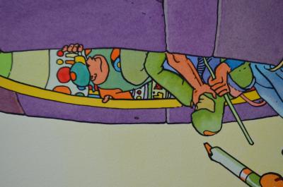 Moebius Starwatcher: el otro mundo Stencil sobre papel Arches (los colores se hacen íntegramente con estarcido a mano) Firmado por el autor y numerado / 50 ejemplares Certificado de sello de autenticidad en la parte posterior. Estado nuevo Dimensiones: 76 x 50 cm Stencil: la aplicación se realiza manualmente con pincel, gracias a stencils generalmente realizados en una aleación de latón y zinc.