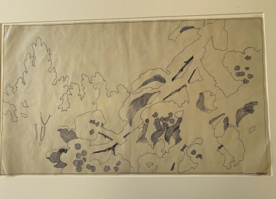 Dessin préparatoire à l'encre de chine sur papier transparent