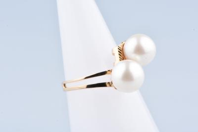 Anillo de oro amarillo de 18 quilates engastado con 2 perlas blancas.
