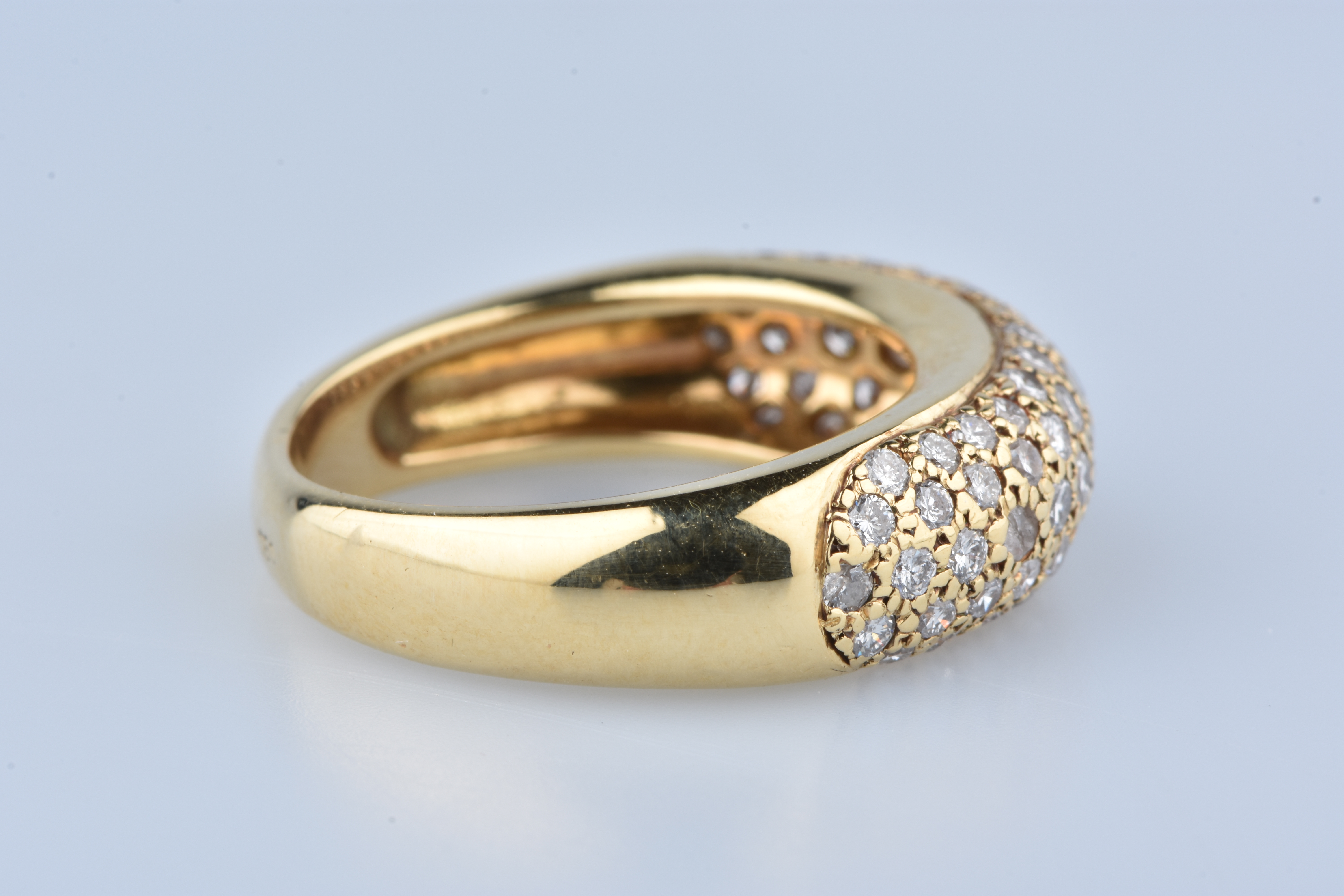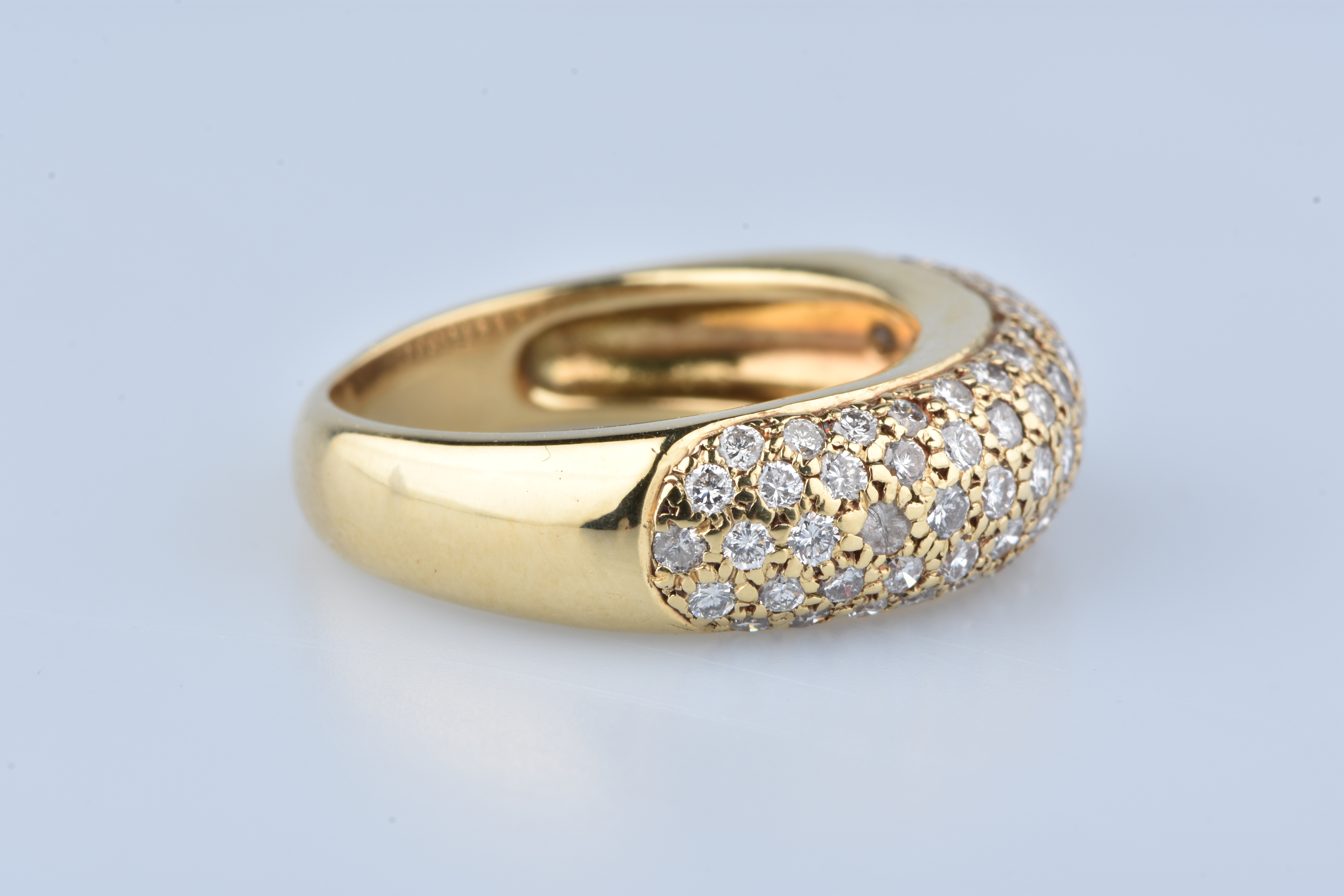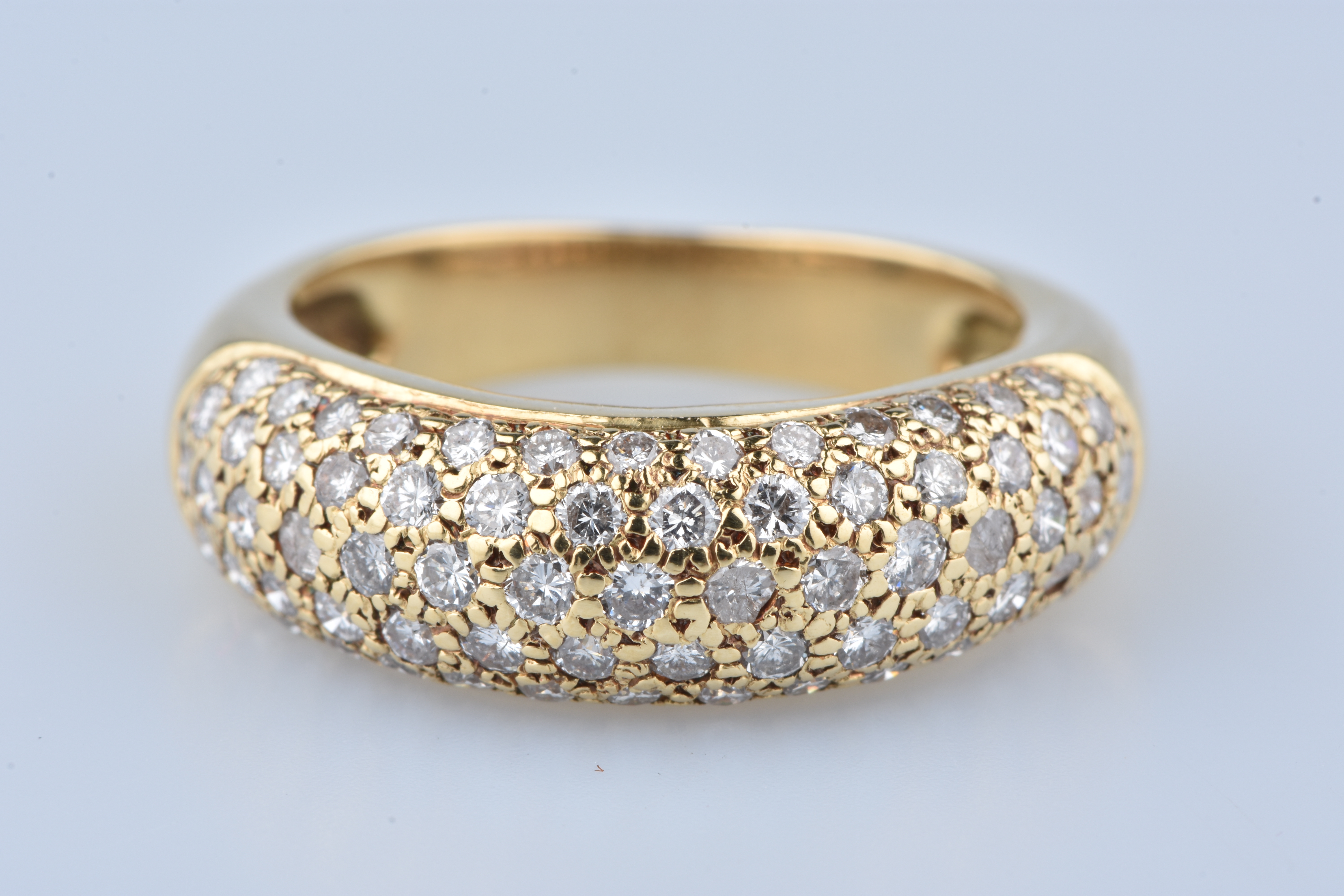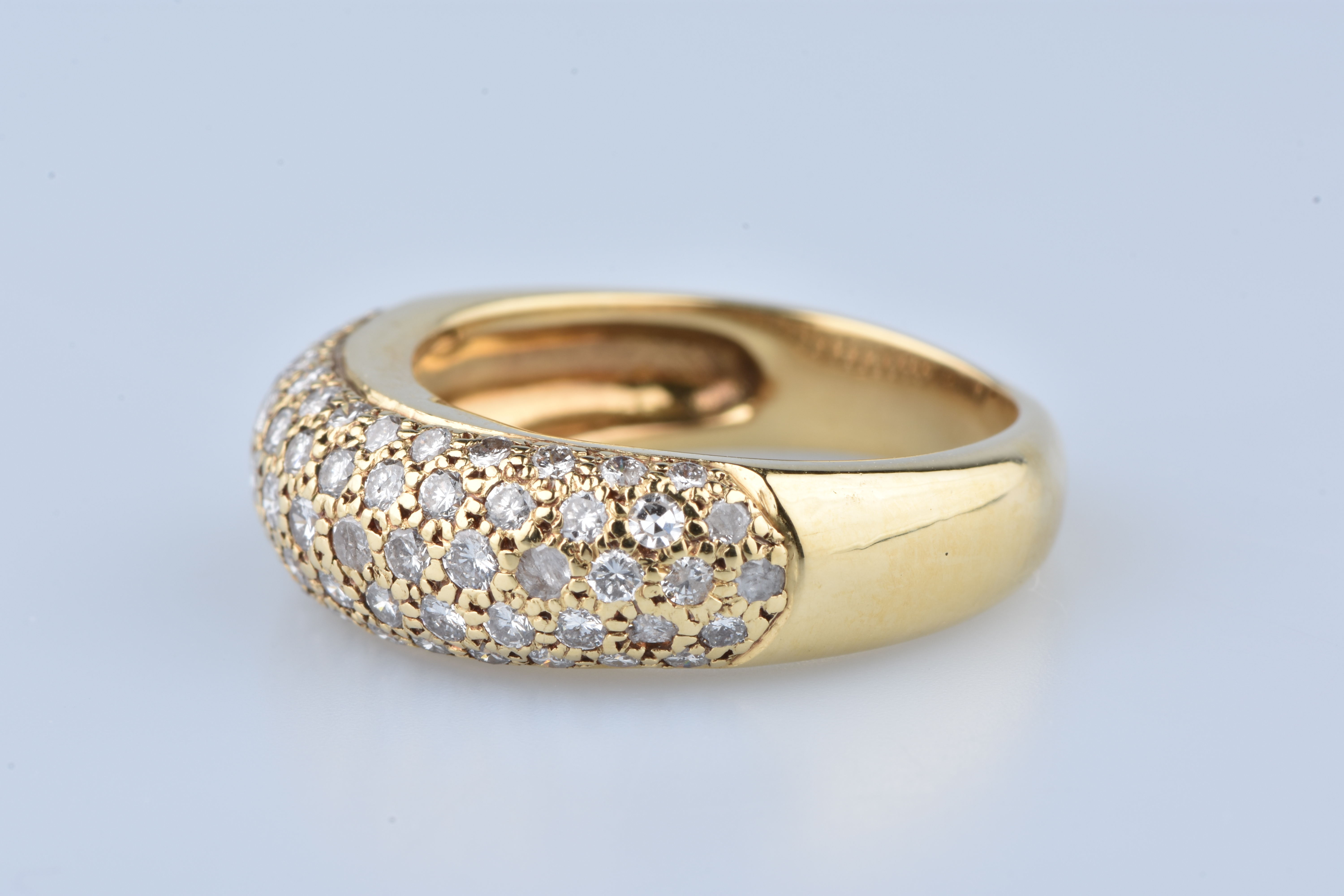 Bague en or jaune 18 carats, pavée de 69 diamants ronds brillants naturels de 0,70 ct au total.