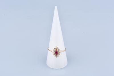 Bague en or jaune 18 carats ornée d'un rubis central de 0,10 ct et d'oxydes de zirconium.
