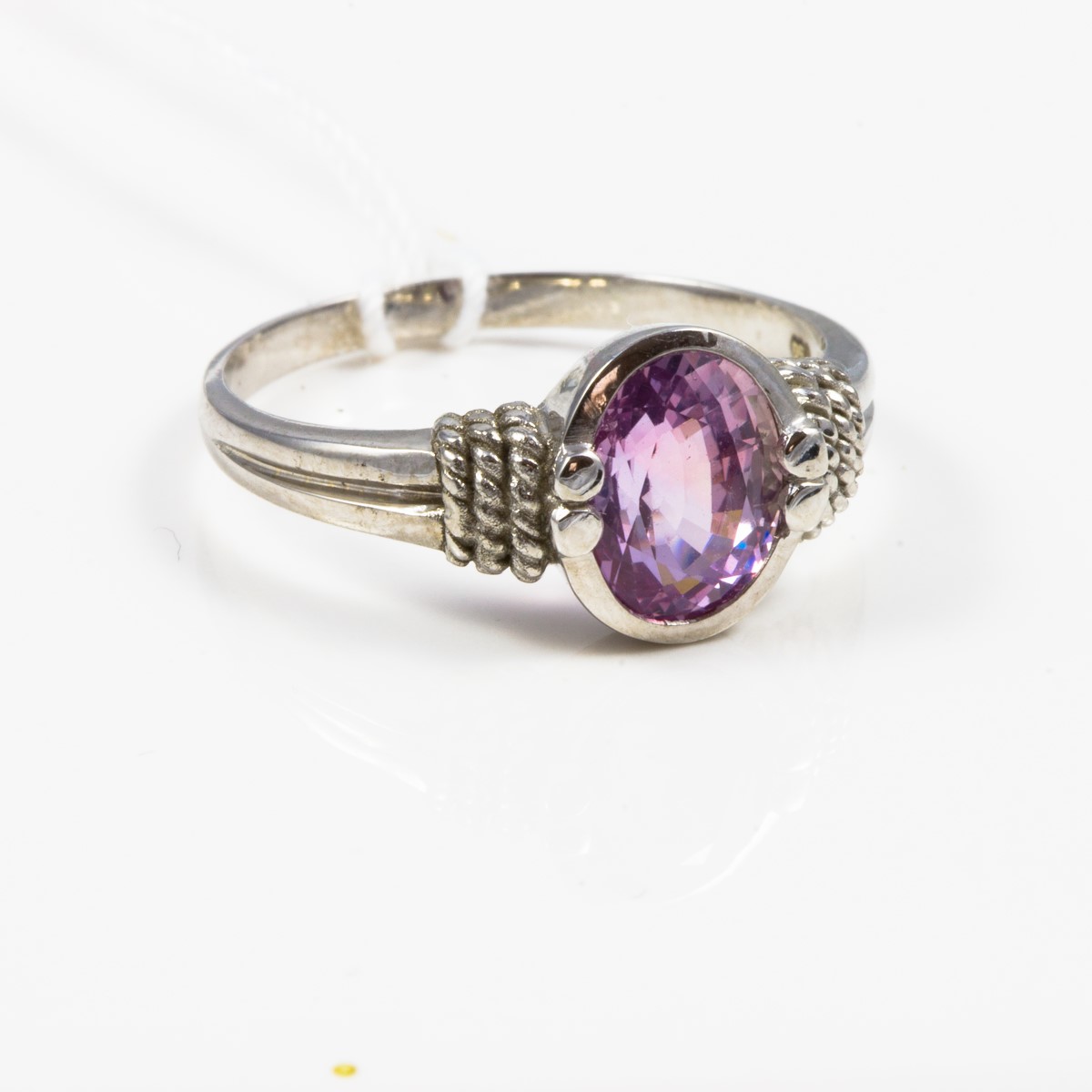 BAGUE en or blanc 750 (18 KT) de forme jonc sertie d'un saphir rose Ovale de 2,1 Carats