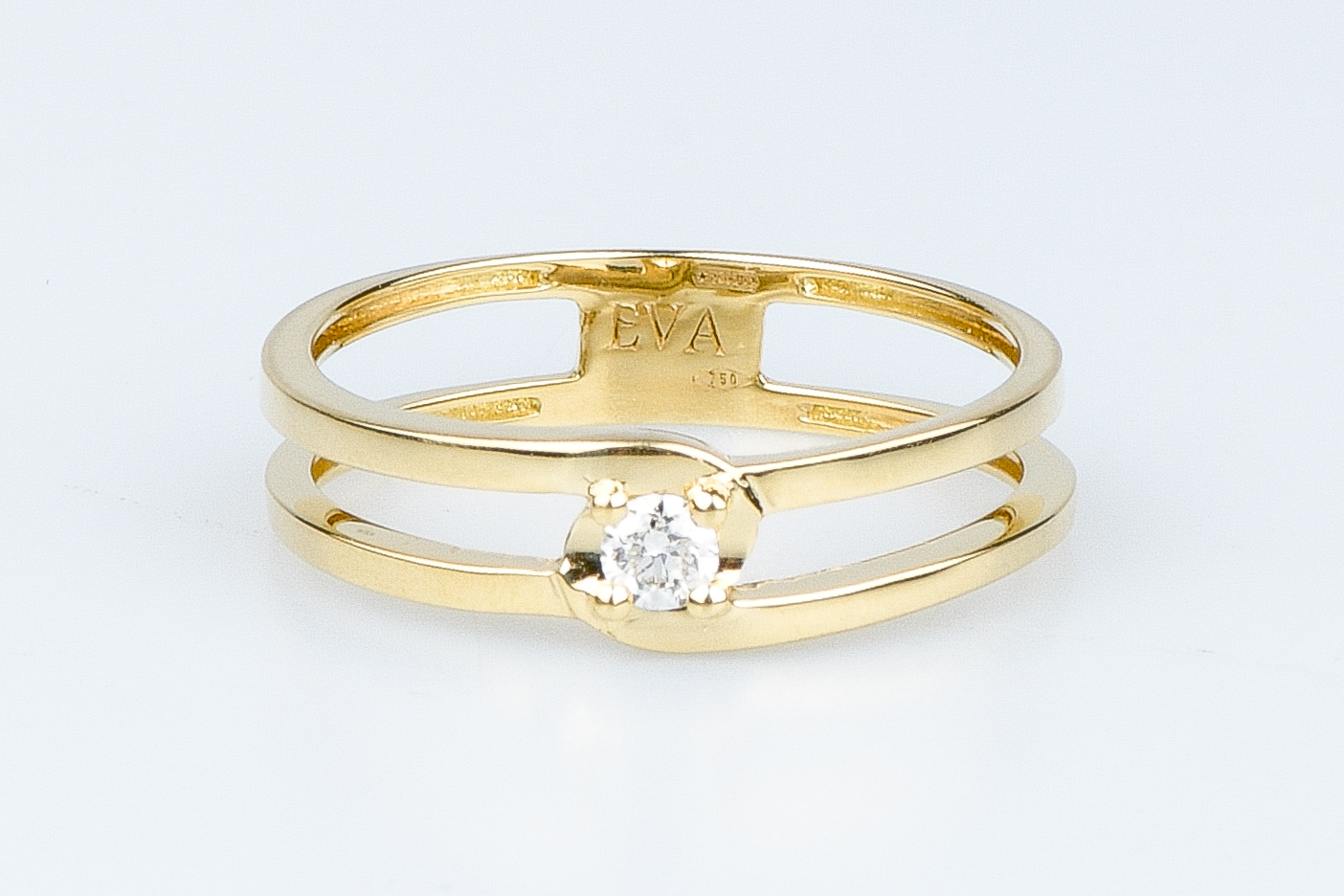Modelo SERENA - Anillo de oro amarillo macizo de 18 quilates adornado con un diamante sintético brillante redondo de 0,10 quilates.