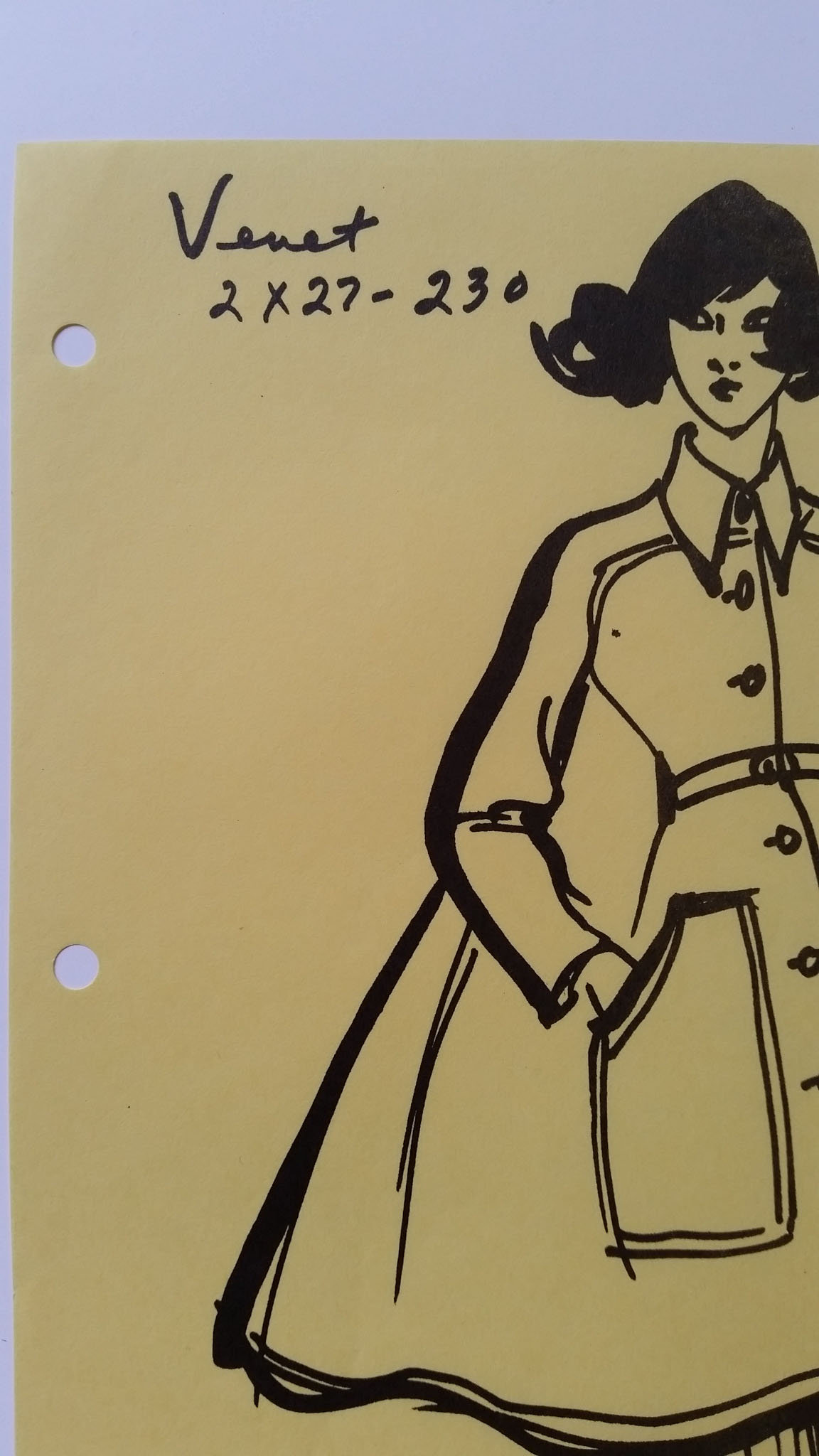 Muy bonito boceto para el conjunto de chaqueta y vestido de Philippe Venet realizado por la oficina de estilo neoyorquino del diseñador firmado Philippe Venet.