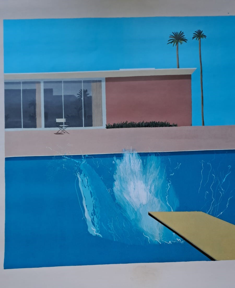 David Hockney : David Hockney est né en 1937 à Bradford au Royaume-Uni. Il vit et travaille entre sa province natale, le Yorkshire et Kensington à Londres. David Hockney étudie au Royal College of Art de Londres dont il sort diplômé en 1962. Il débute sa carrière en tant que dessinateur de presse pour le Sunday Times. Après L'Égypte, il découvre les États-Unis et particulièrement la Californie dont les magnifiques villas et piscines deviendront un sujet récurrent dans son œuvre. David Hockney est une des figures majeures du mouvement pop art dans les années 60 mais également de l'hyperréalisme. Sa particularité est d'employer des teintes chatoyantes et très colorées. David Hockney est inspiré par la photographie. Son travail traduit cet attrait par un réalisme saisissant.