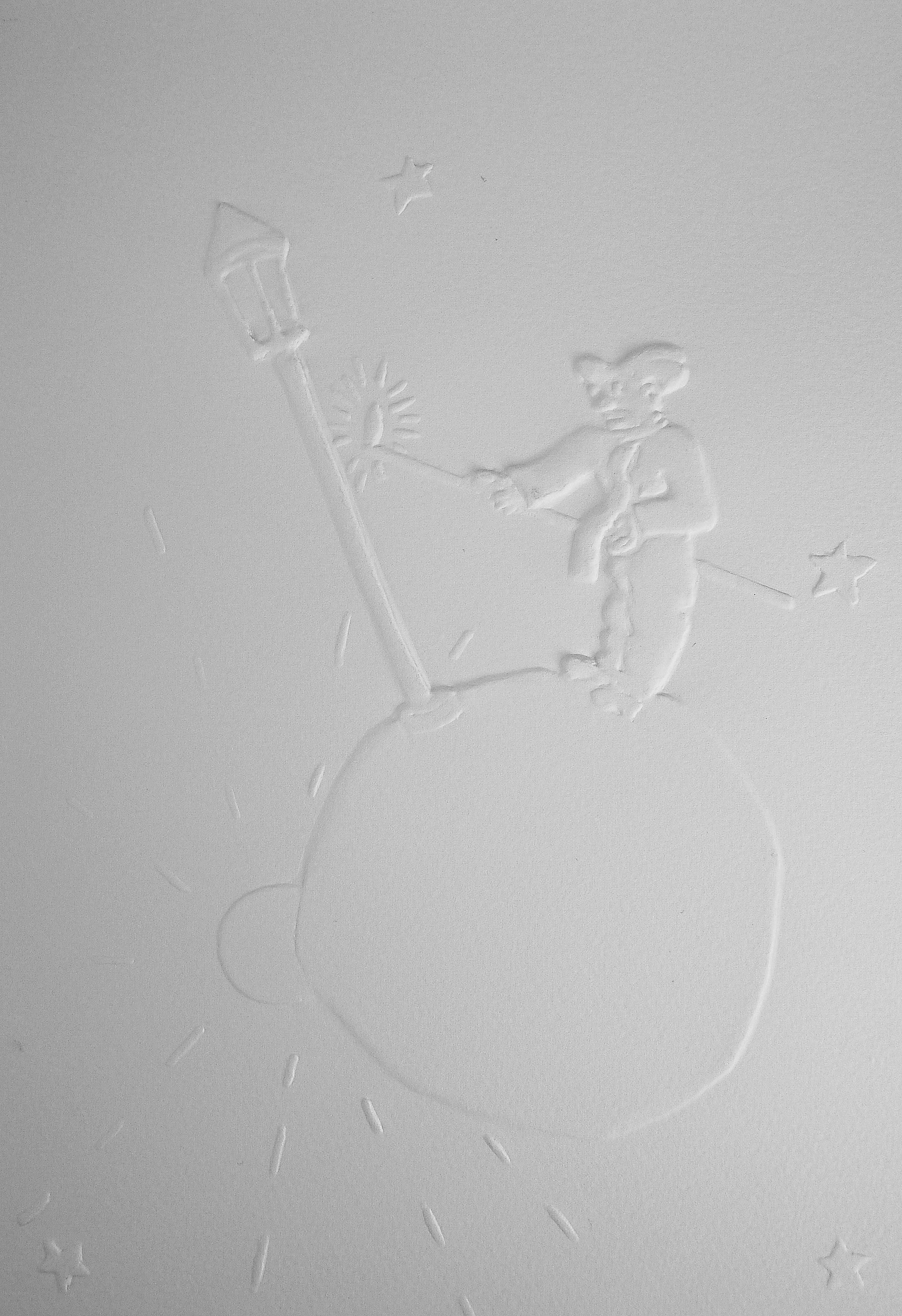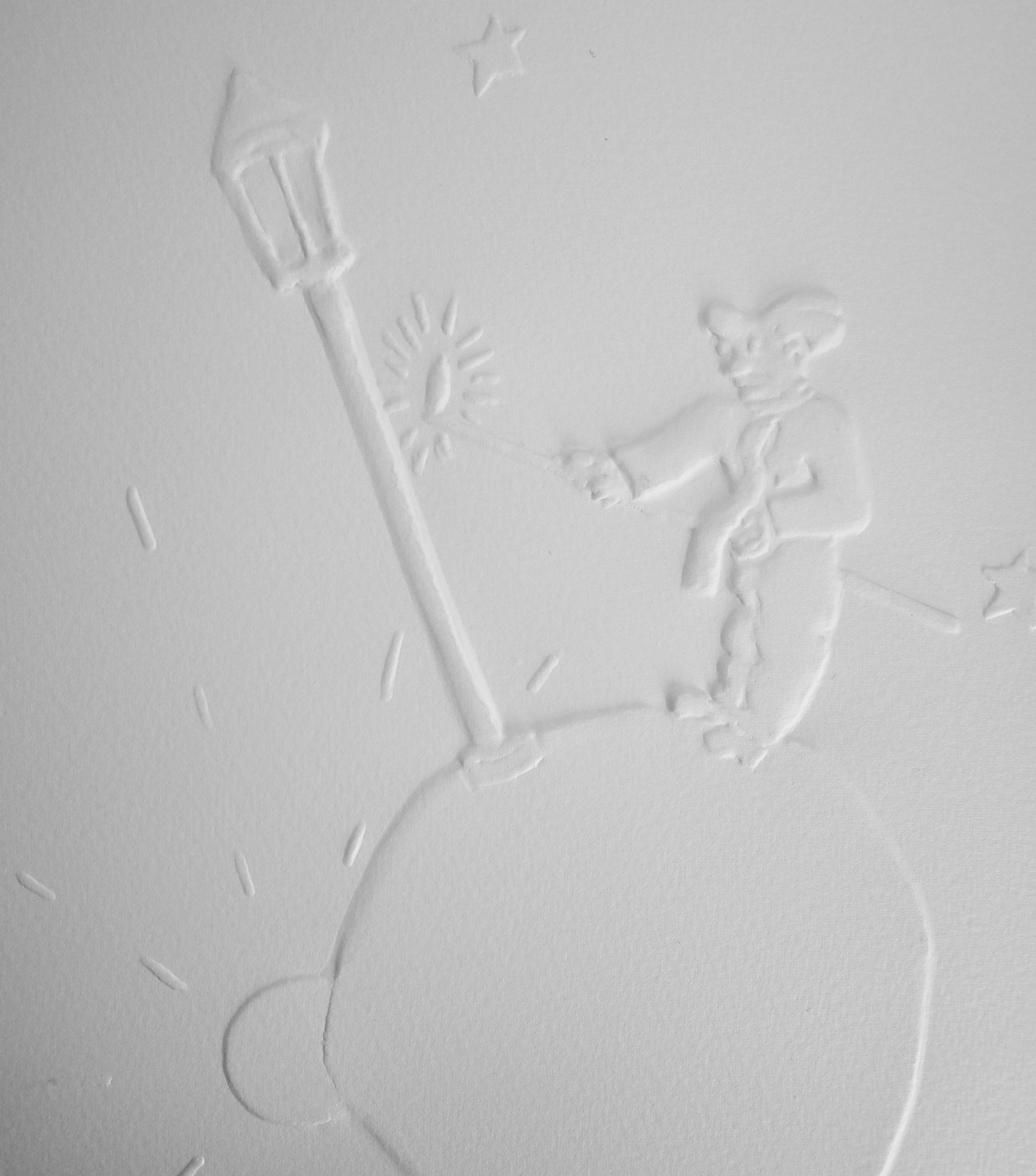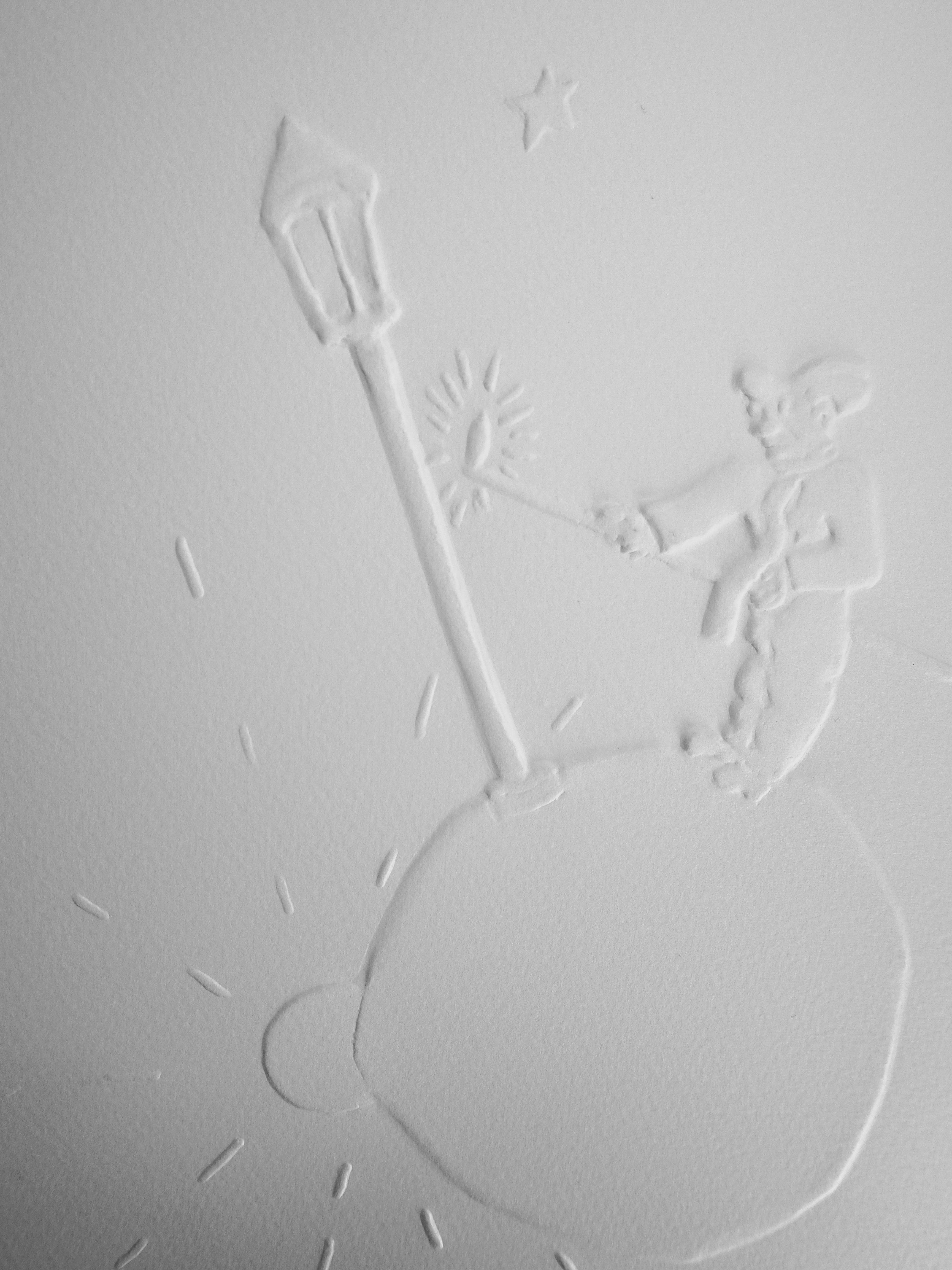 Antoine de SAINT-EXUPERY : L’astéroïde de l’allumeur de réverbère - Gravure sur bois