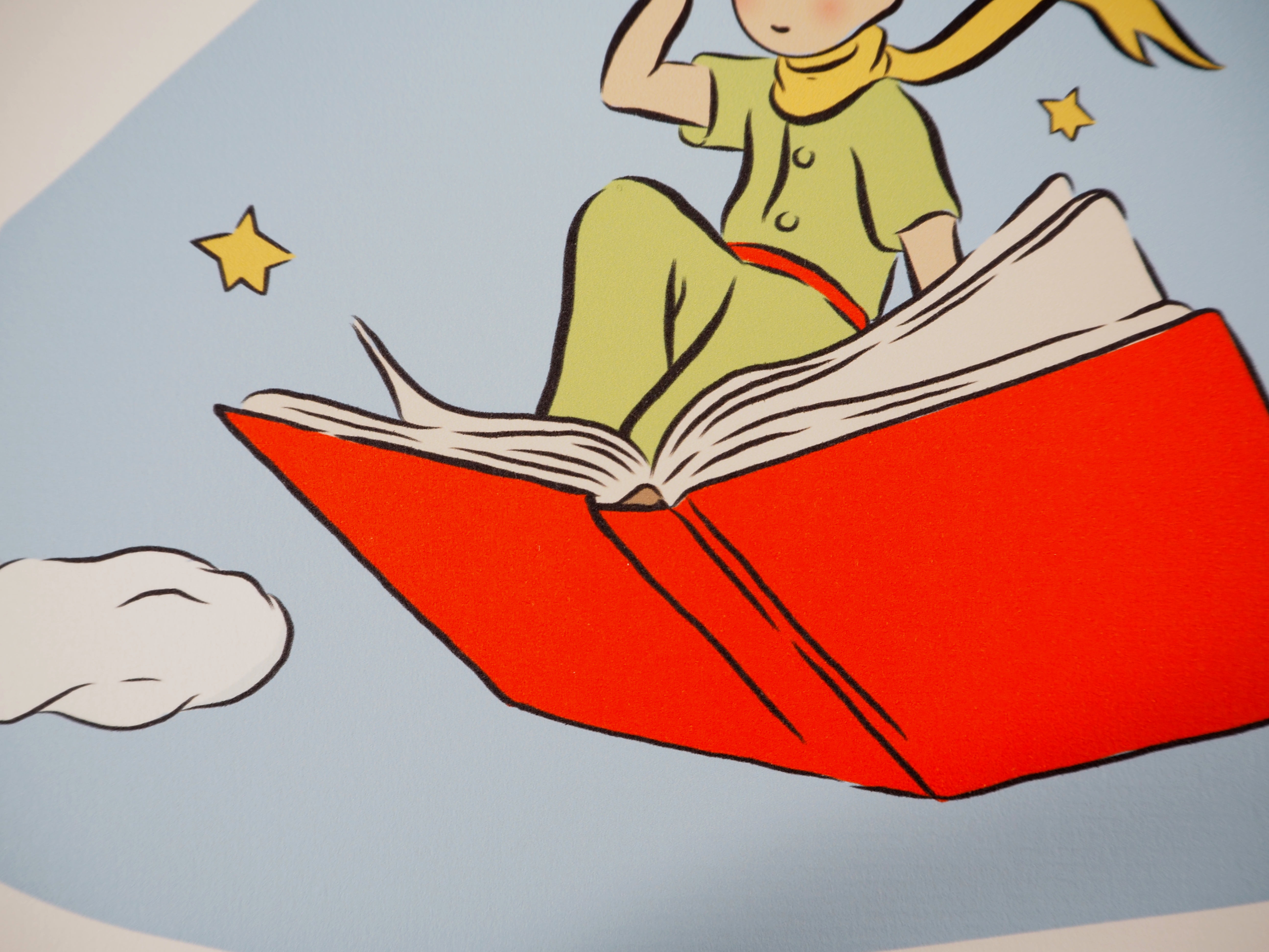 Antoine DE SAINT-EXUPERY : Le Petit Prince et le livre volant - Lithographie
