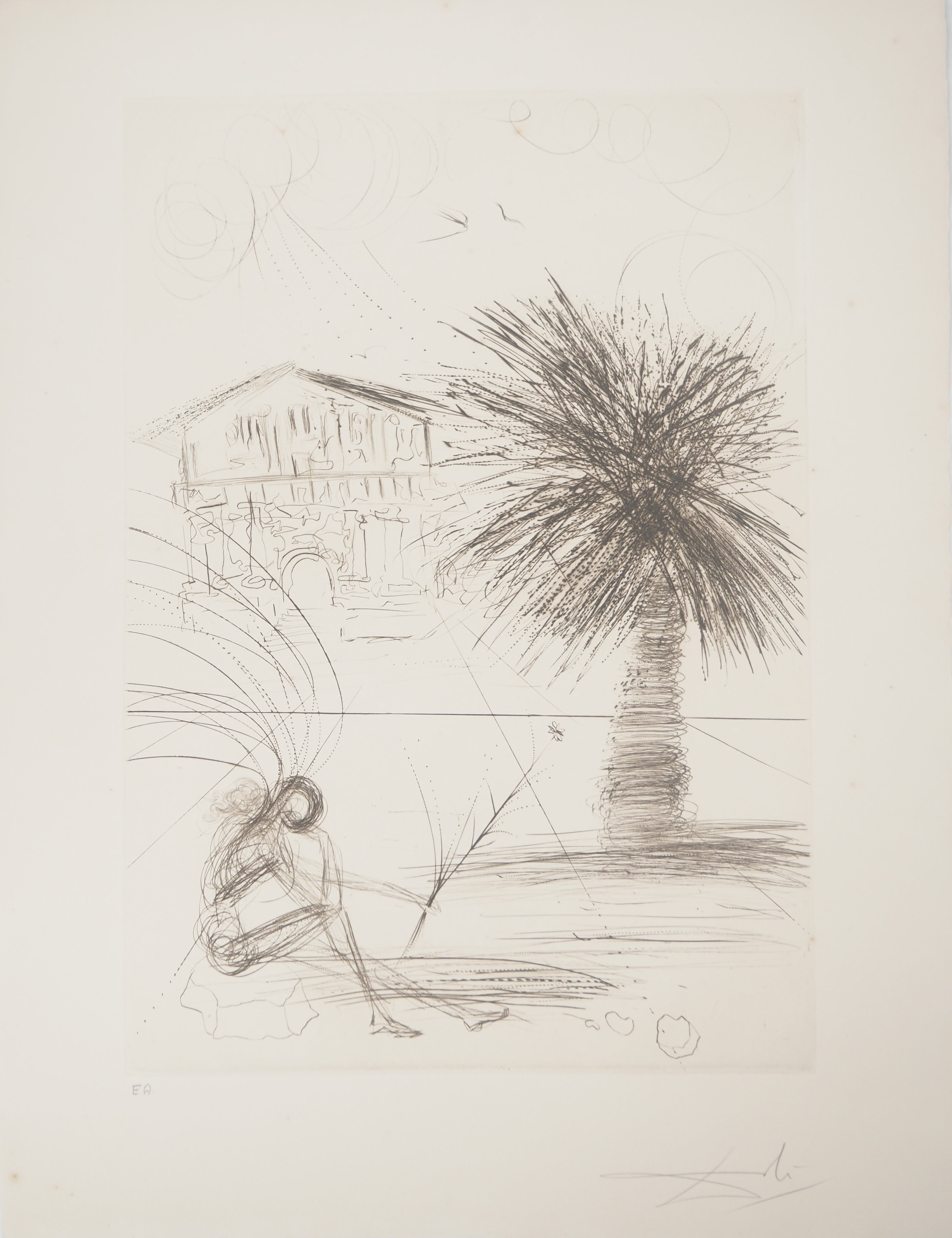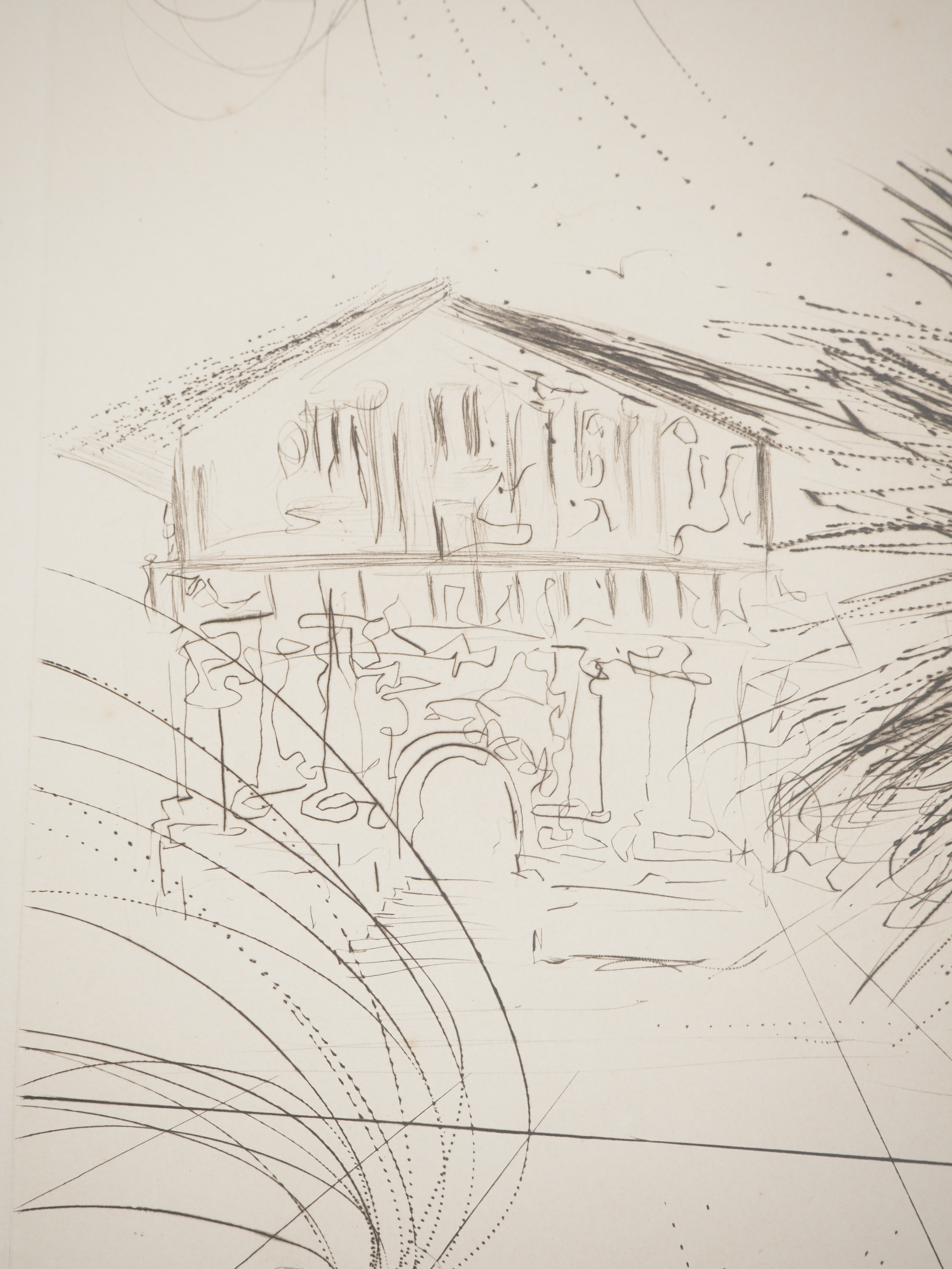 Salvador DALI : San Francisco, Mission Dolores, Gravure originale signée