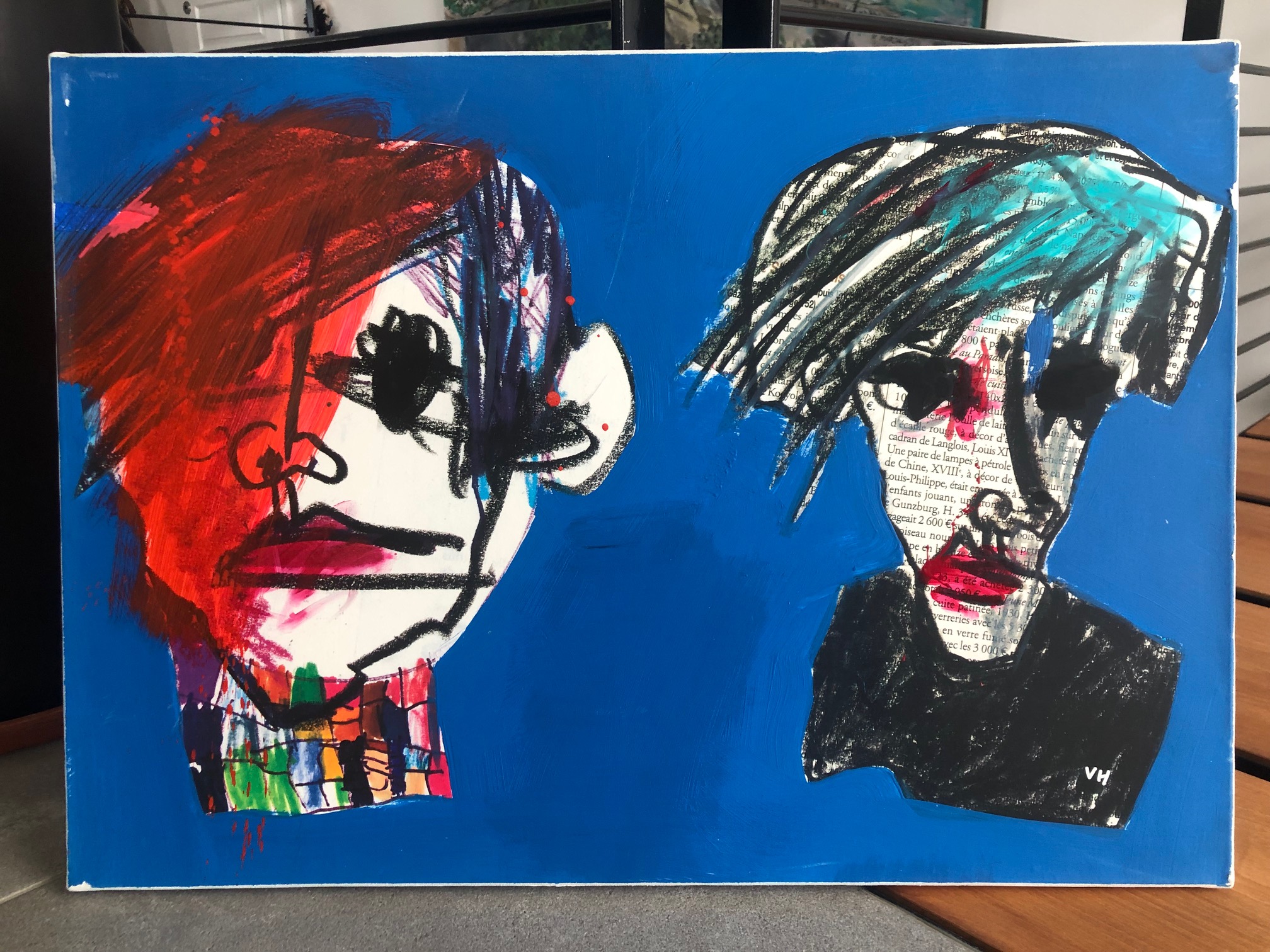 Tableau original sur toile en technique mixte, peinture acrylique et sérigraphies.
