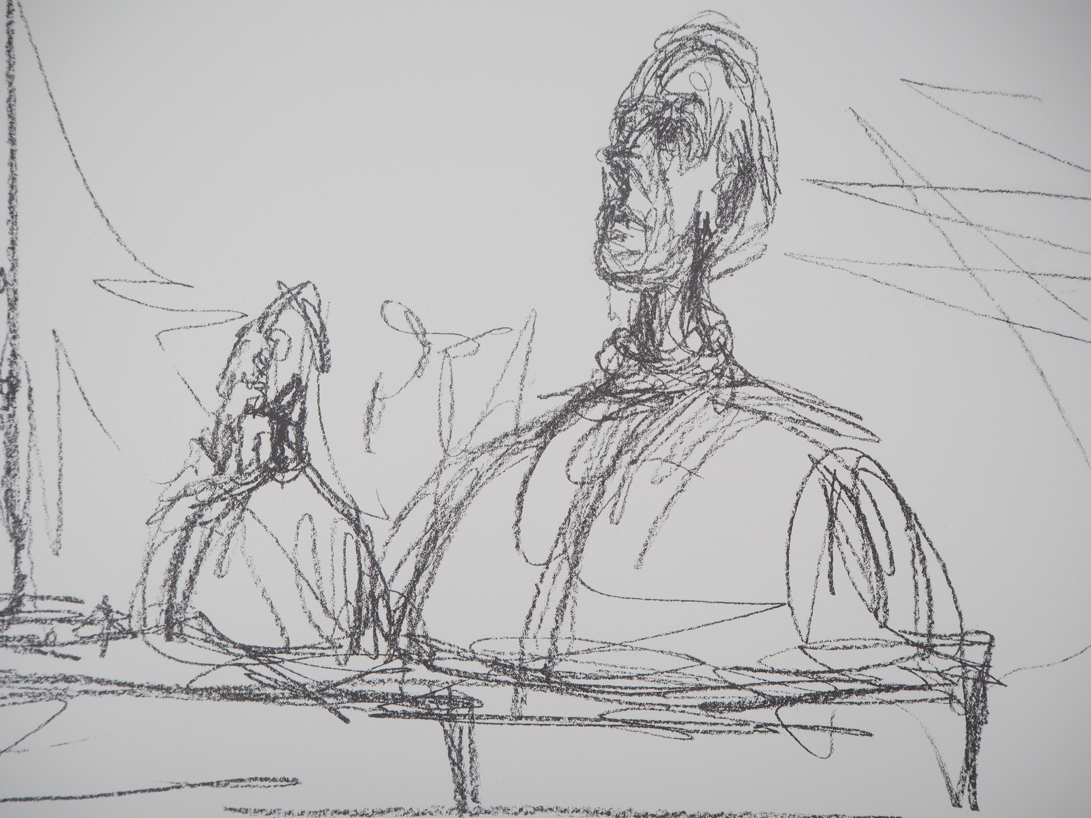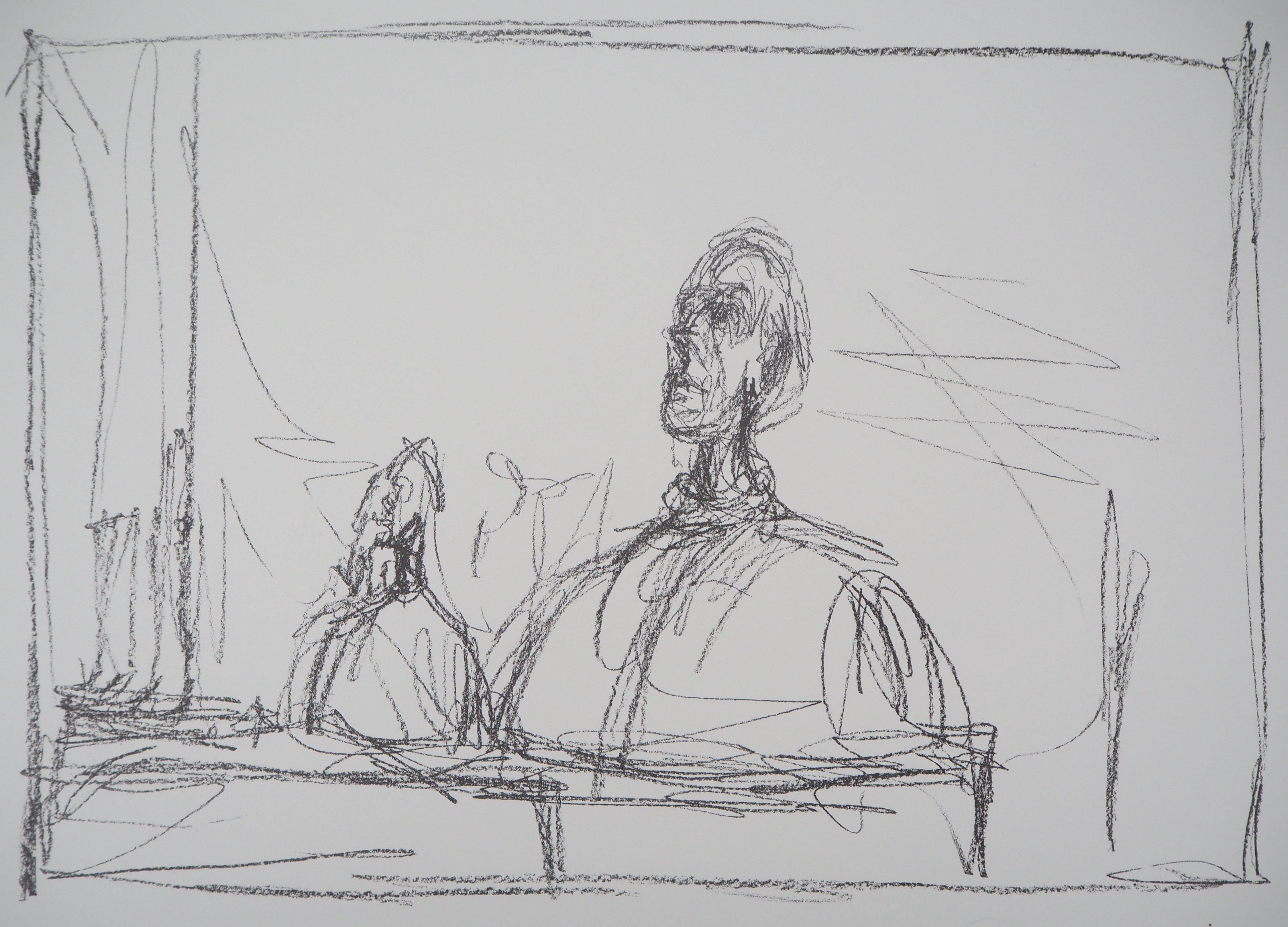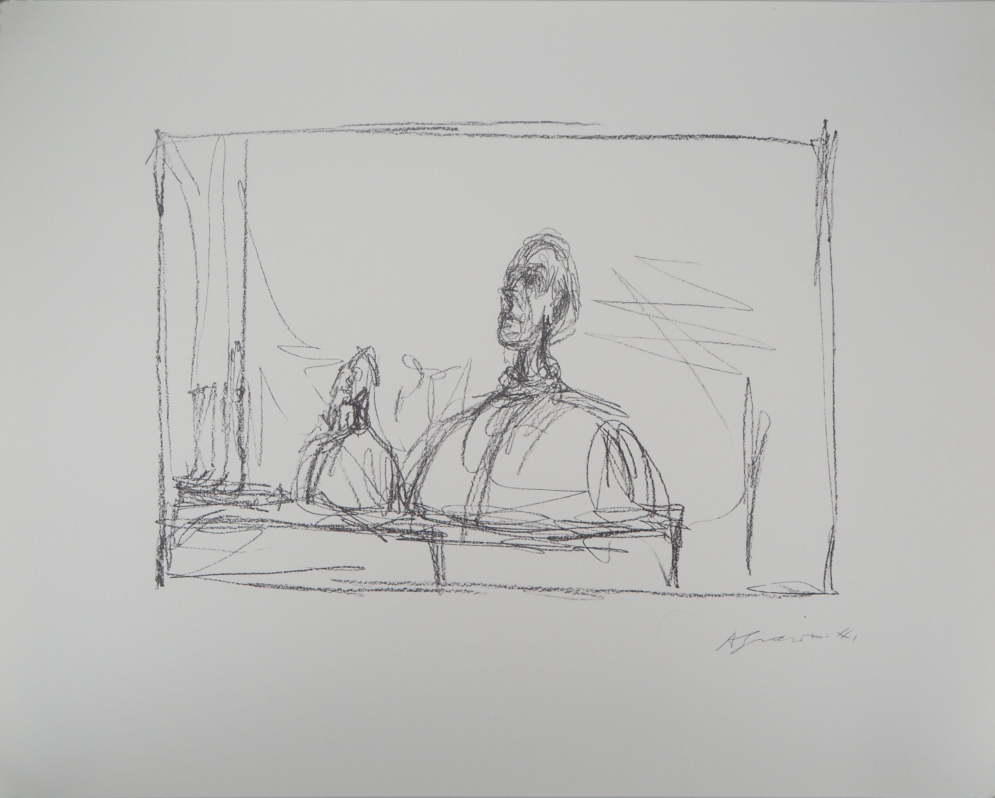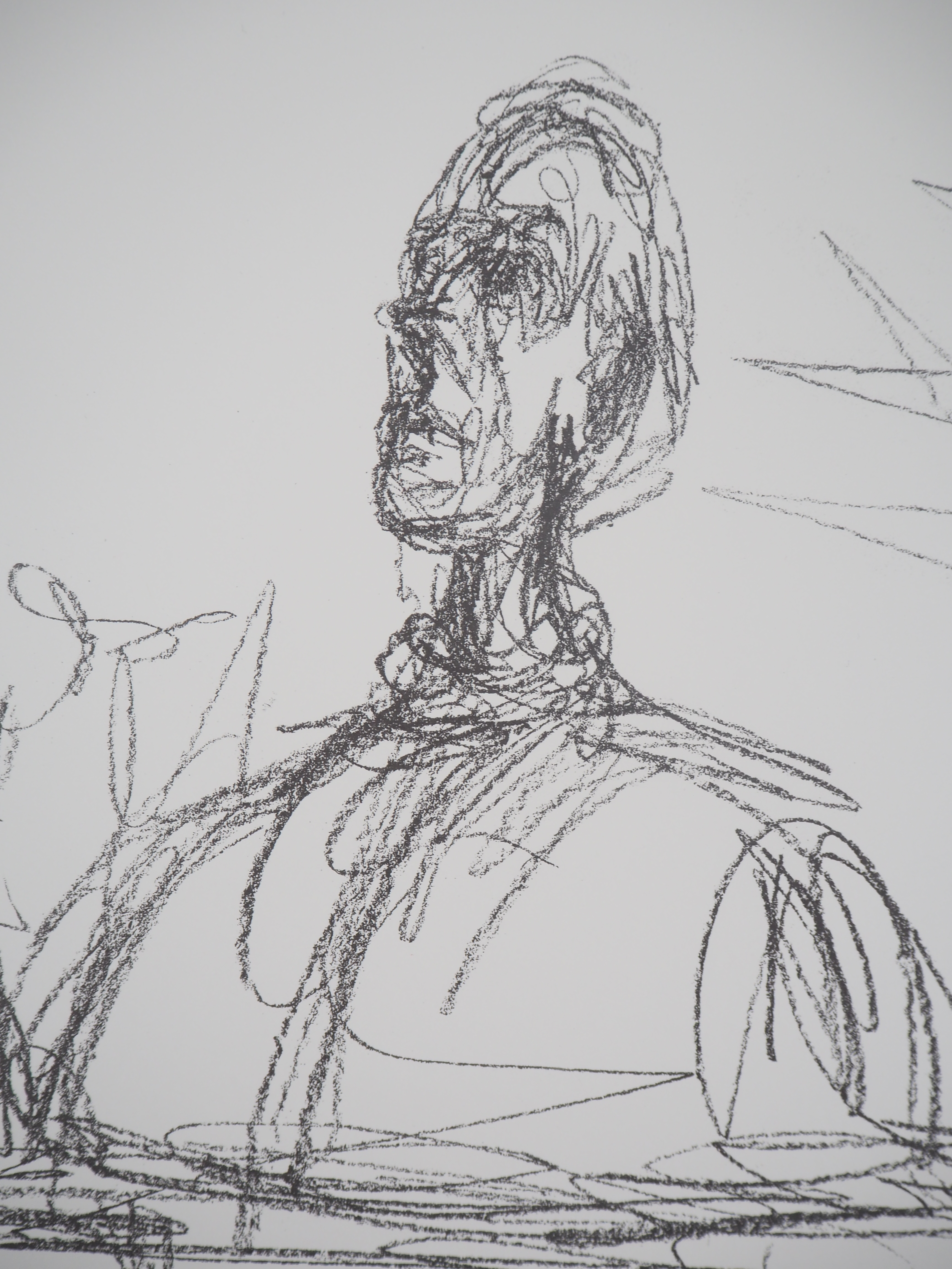 Alberto Giacometti (1901-1966) est un sculpteur et peintre surréaliste Suisse. Dès son plus jeune âge, son père, lui-même artiste, le pousse à peindre des portraits familiaux. Alberto Giacometti étudie aux Beaux-Arts de Genève, puis se rend à Paris à 21 ans. Il y découvre le cubisme, s’intéresse à l’art premier d’Afrique, ainsi qu’aux statues grecques. Ses statues sont en plâtre, puis souvent peintes ou coulées en bronze. Ses œuvres les plus célèbres sont principalement réalisées lors des dix dernières années de sa vie. Alberto Giacometti expose pour la première fois au Salon des Tuileries. Il se lie d’amitié avec Louis Aragon, André Breton, Salvador Dalí, André Masson, ou Jean Genet. Les arts de l’époque de Giacometti renvoient essentiellement à la violence, l’inquiétude ou l’onirisme qui hante les mentalités. Alberto Giacometti réalise d’abord de minuscules statues, jusqu’à la Femme au chariot, en 1944-1945, puis s’adonne à des statues tout en longueur, filiformes. Les dessins et peinture d’Alberto Giacometti sont le plus souvent figuratifs, sombres, sans décors et le visage est particulièrement travaillé. Alberto Giacometti guéri en 1963 d’un cancer de l’estomac, mais meurt à l’âge de 64 ans en Suisse. Il fut exposé au Musée de L’orangerie à Paris, au Musée d’Art Moderne de Paris, au Centre Pompidou à Paris, à la National Portrait Gallery de Londres et New-York, Copenhague et Londres ont réalisé des rétrospectives.