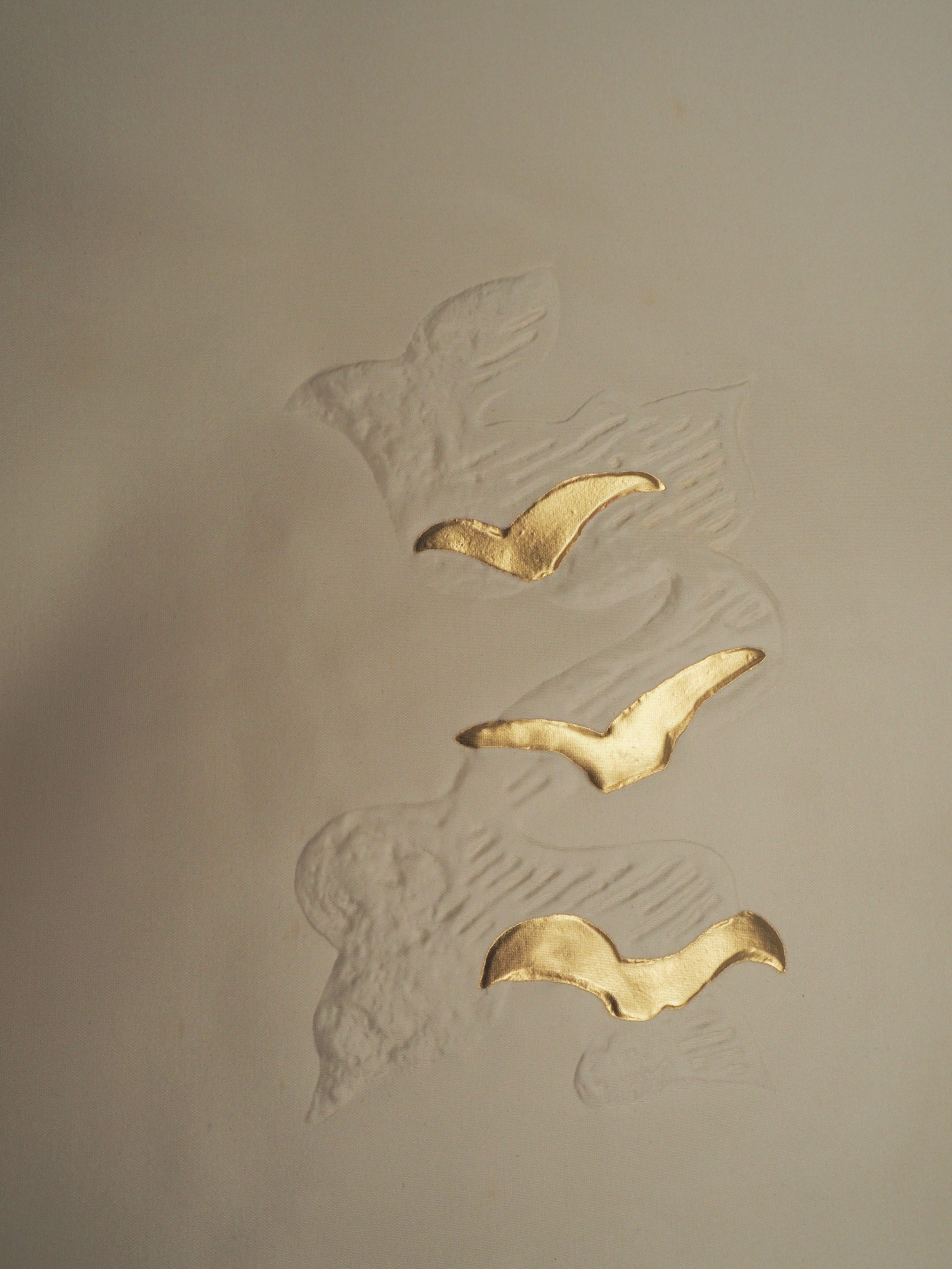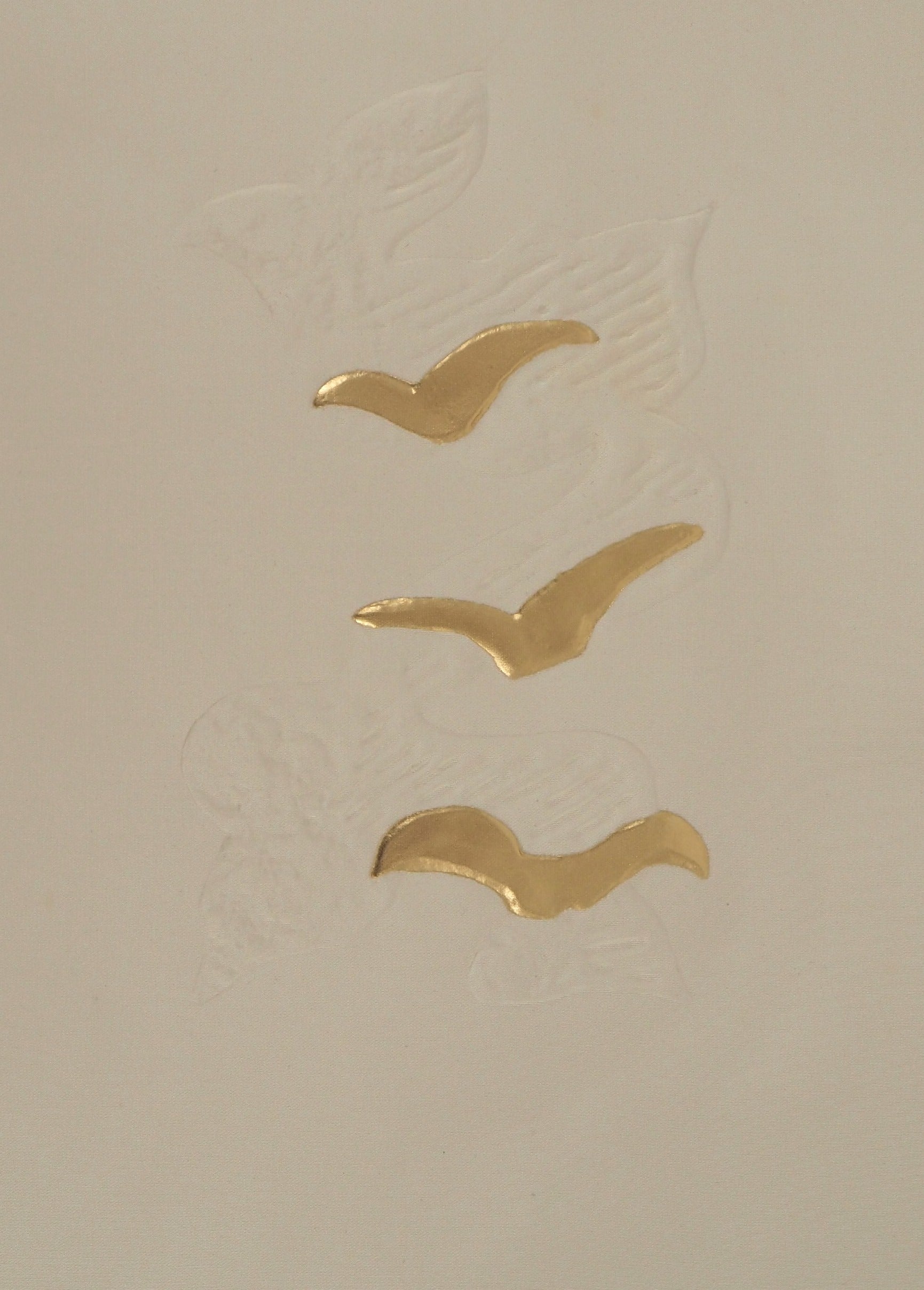 Georges BRAQUE : Les colombes dans le ciel, Gravure réhaussée à l’or