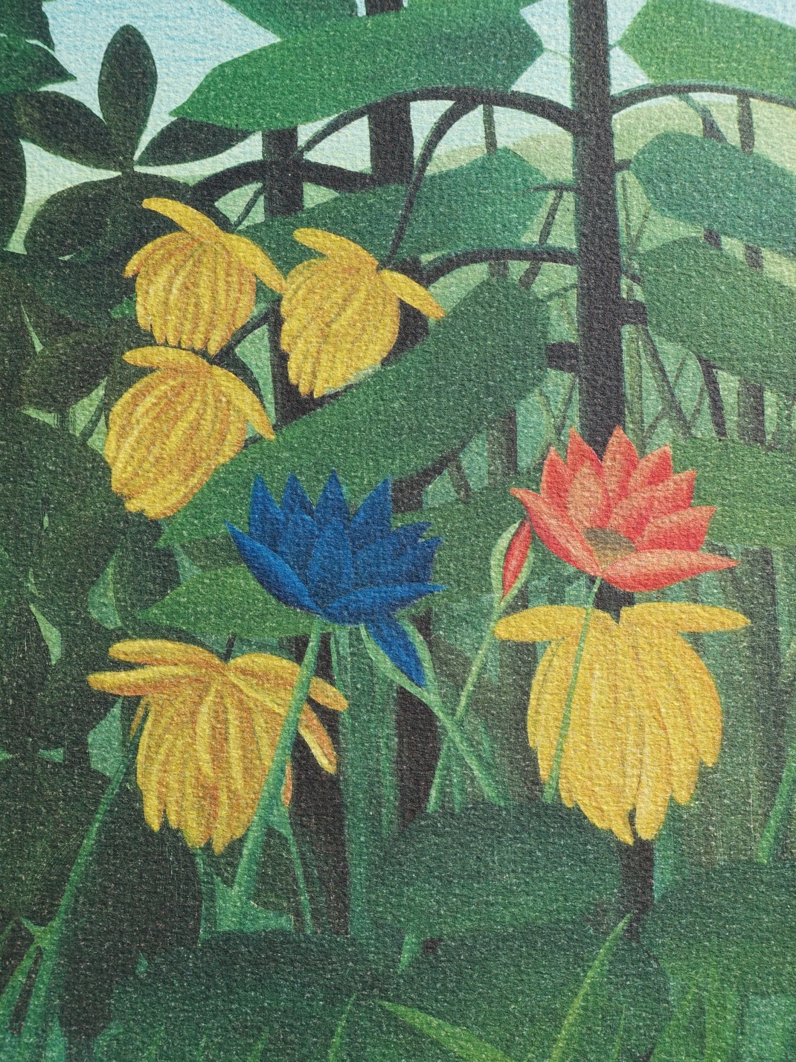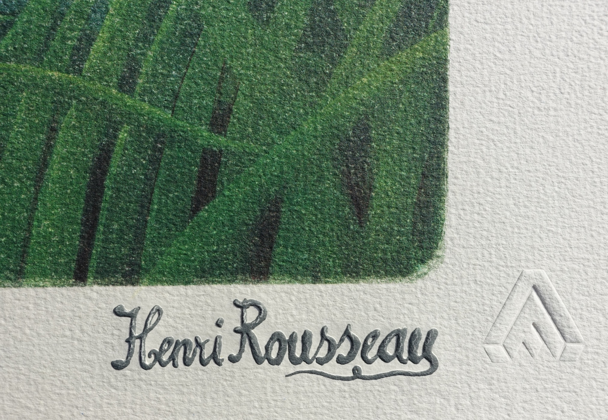 (1844-1910) dit Le Douanier Rousseau est un peintre français. Il est considéré comme un représentant majeur de l'art naïf. Issu d'une famille modeste, il étudie le droit avant de partir à Paris, où il travaille dans un octroi. Cette position lui vaut son surnom de « douanier ». Il apprend lui-même la peinture et produit un grand nombre de toiles, qui représentent souvent des paysages de jungle. Il n'a pourtant jamais quitté la France. Son inspiration provient surtout de livres illustrés, des jardins botaniques et de rencontres avec des soldats qui avaient participé à l'intervention française au Mexique.