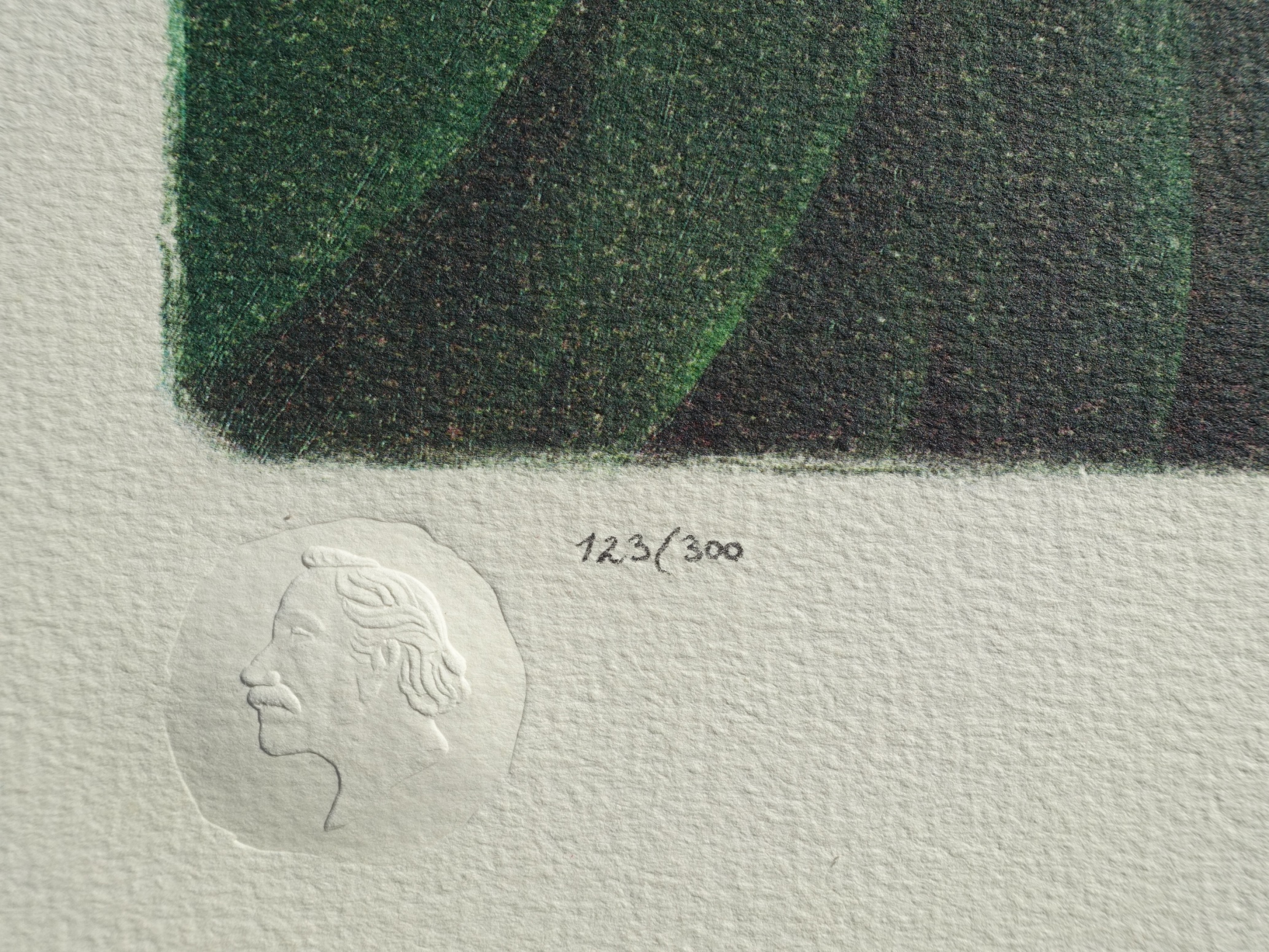 La lithographie tire son nom du grec lithos «pierre» et graphein, «écrire». Il s'agit d'une technique d’impression qui permet la création et la reproduction d'oeuvres graphiques en plusieurs exemplaires à partir de dessins reproduits sur une pierre calcaire. Le papier est mis en contact des pierres encrées dans une presse. Les lithographies peuvent être numérotées ou non. Des grands ateliers, comme Maeght ou Mourlot, maitres dans cette technique, et spécialisé dans cette technique on produit des lithographies des plus grands maîtres, très recherchées aujourd'hui