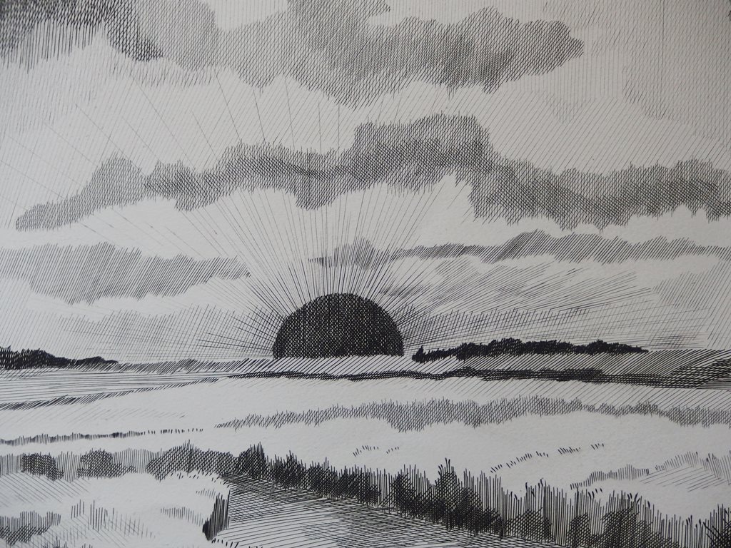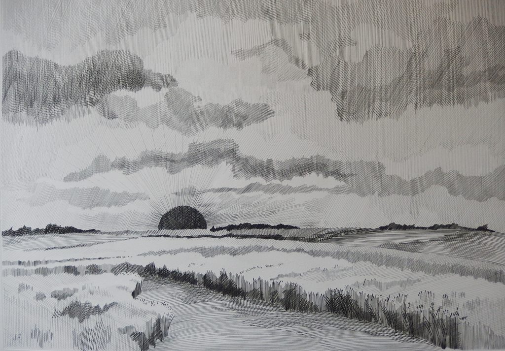 Jean FEUGEREUX - Soleil couchant sur la Beauce, Gravure originale signée
