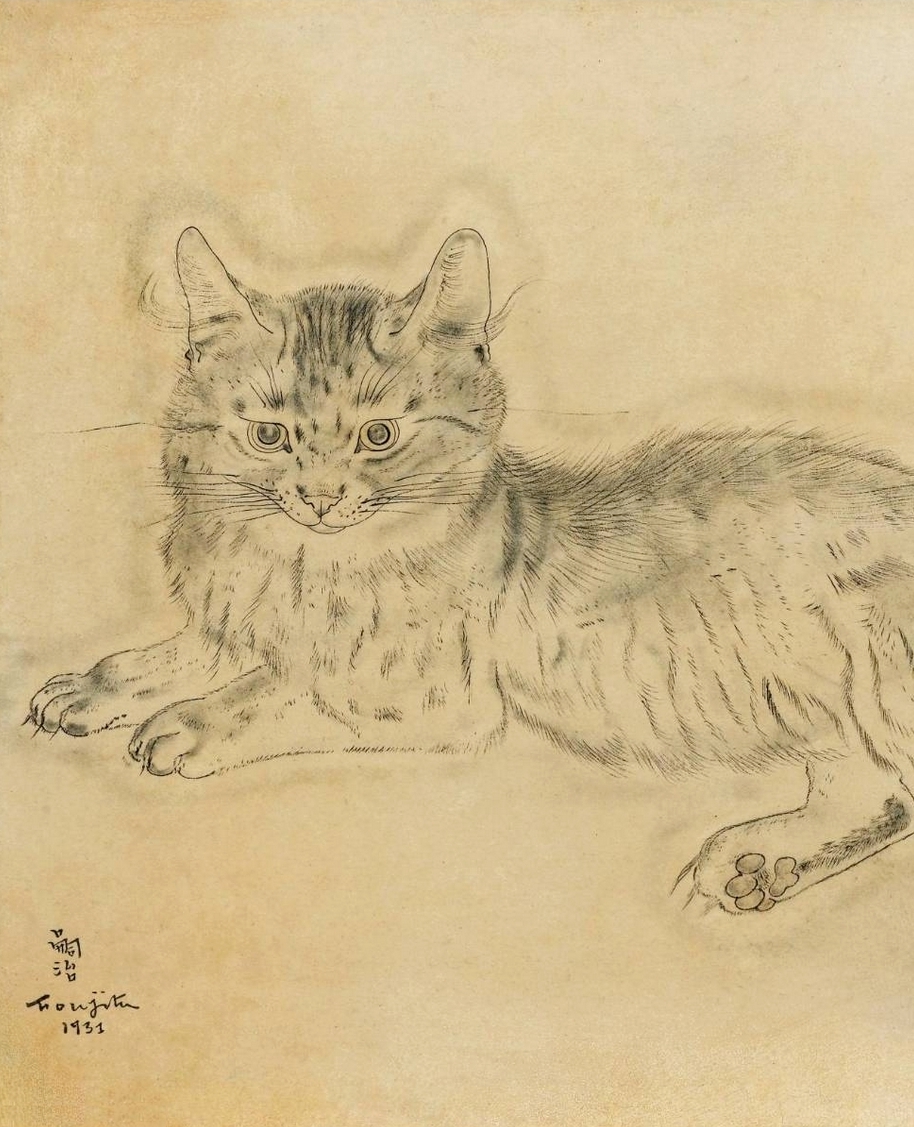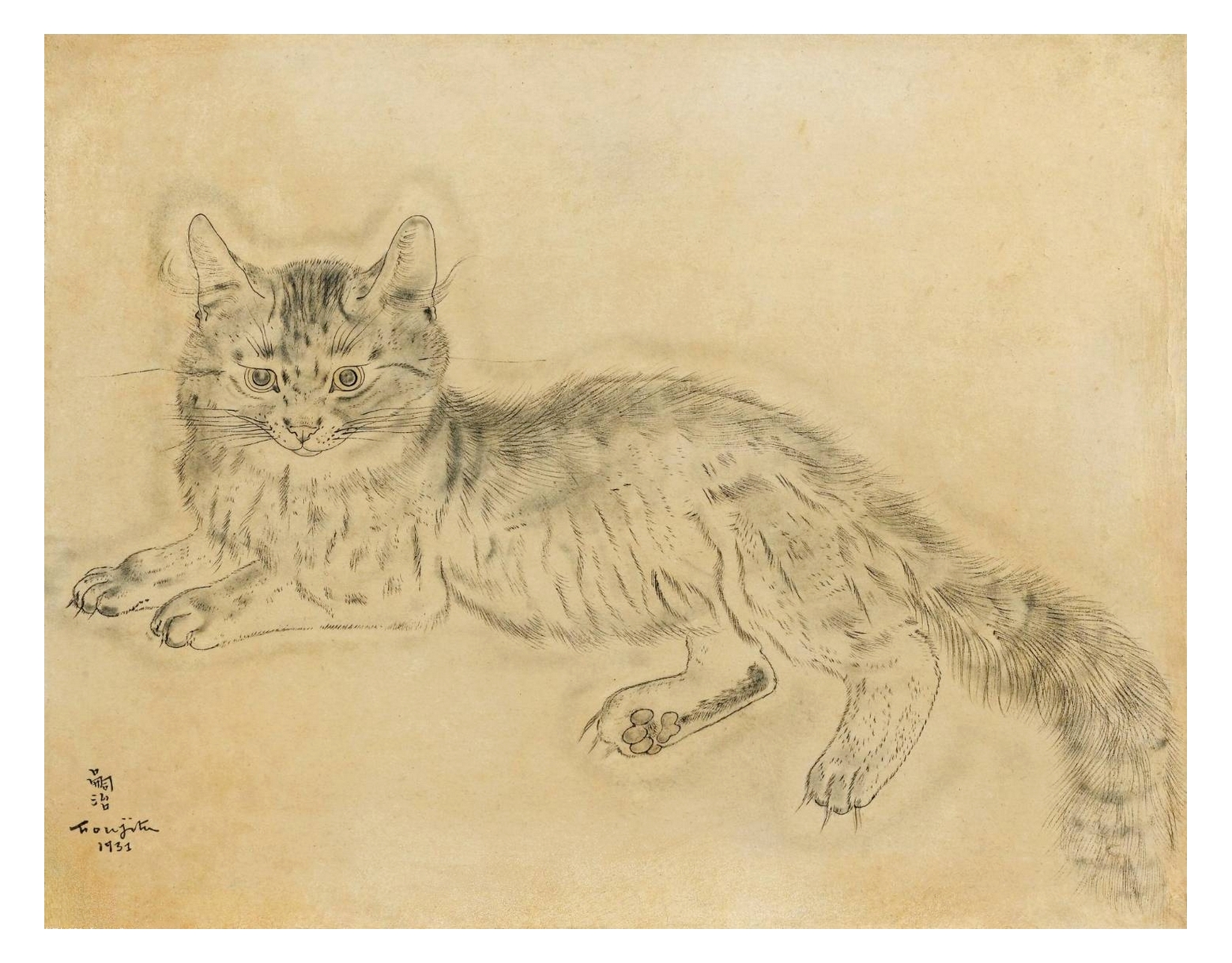 Tsuguharu Foujita : Né à Tokyo en 1886, Tsugouharu Foujita ou Tsuguharu Fujita, est un artiste complet (peintre, dessinateur, graveur, illustrateur, céramiste, photographe, cinéaste, créateur de mode...) de renommée internationale. Lorsqu'il arrive à Montparnasse en 1913, les compositions cubistes et les peintures du Douanier Rousseau de l'atelier de Picasso le poussent à intégrer l'avant-garde de l'Art moderne. Foujita devient un des plus importants membres l'École de Paris (qui éclos en 1918). Il se lie d'amitié avec Modigliani, Pascin, Moïse Kisling, Chana Orloff, Soutine, Derain, Vlaminck, Fernand Léger, Juan Gris, Matisse... Sa première exposition personnelle en juin 1917 est un triomphe ; il expose 110 aquarelles dans un genre mi japonais, mi-gothique. Il est de tous les salons de peinture à Paris, Bruxelles, en Allemagne, aux États-Unis et au Japon. Il connait un triomphe durant les Années Folles à Montparnasse : Ses tableaux de femmes, d'enfants et de chats entrent dans les plus grandes collections. En 1955, il obtient la nationalité française. Il se convertit au catholicisme 4 ans plus tard et prend le nom de Léonard. En 1964, il décide avec René Lalou de bâtir et décorer la chapelle Notre-Dame-de-la-Paix (chapelle Foujita) à Reims. Léonard Foujita meurt en 1968 à Zurich.